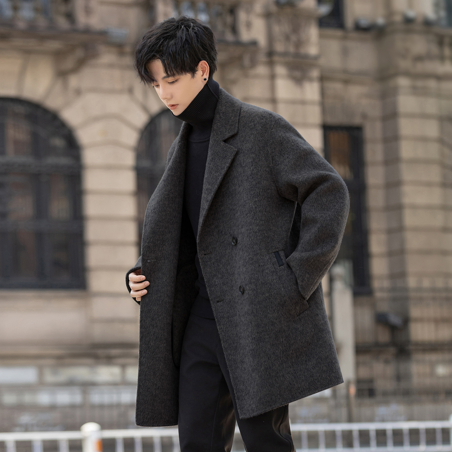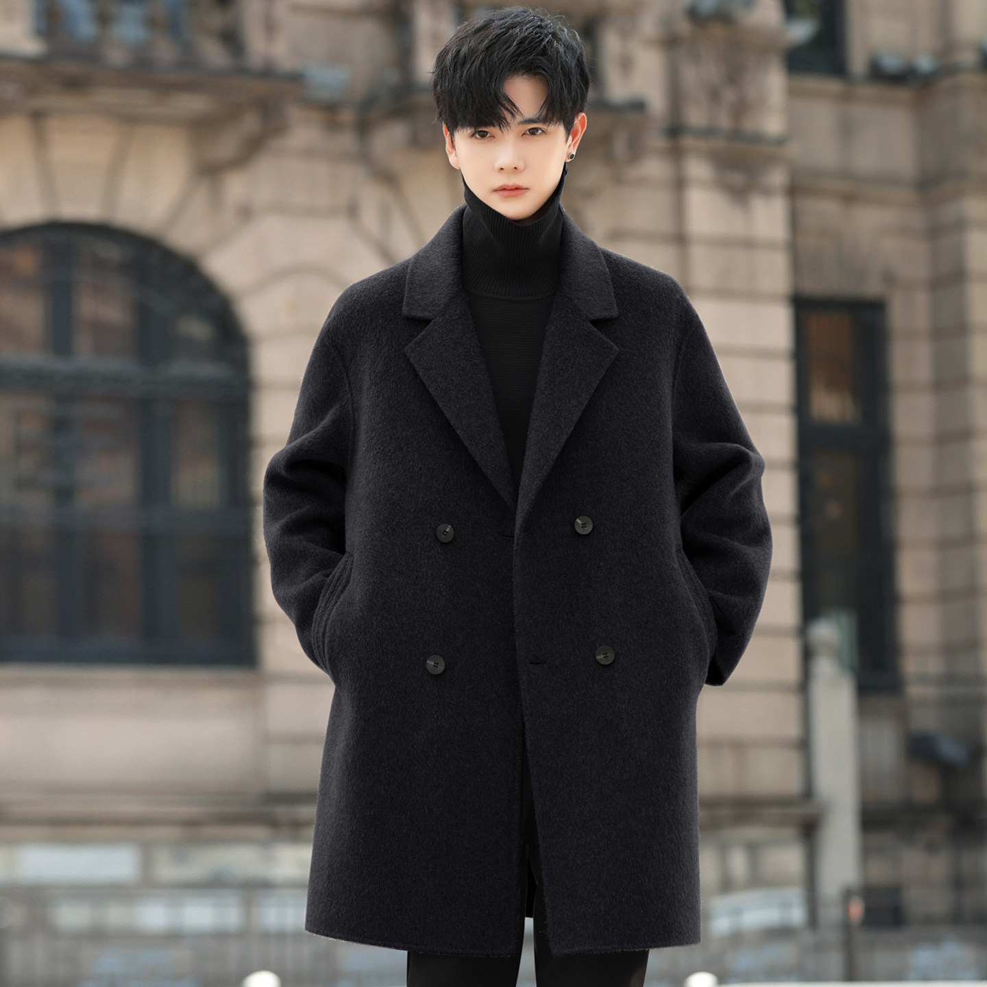 25 New Men's Double-Sided Fleece Coat Mid-length Autumn and Winter Tweed Jacket Tweed Tweed Coat Thickened Luxury