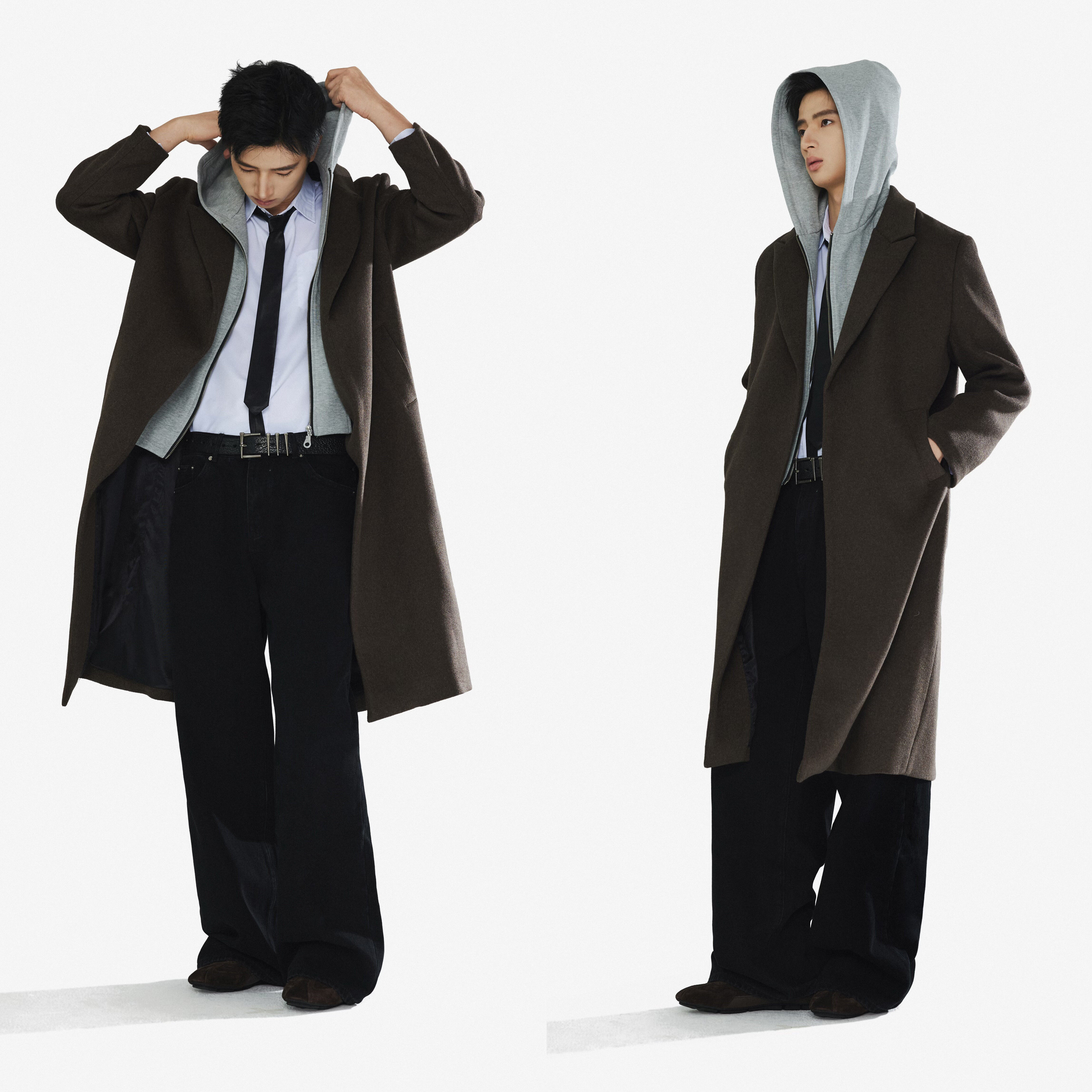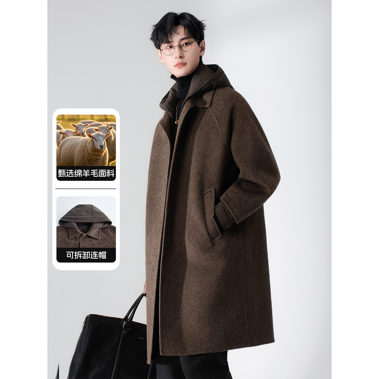 Winter reversible wool coat, men's hooded mid-length model, 2025 new woolen girl, ruffian handsome trench coat jacket trend