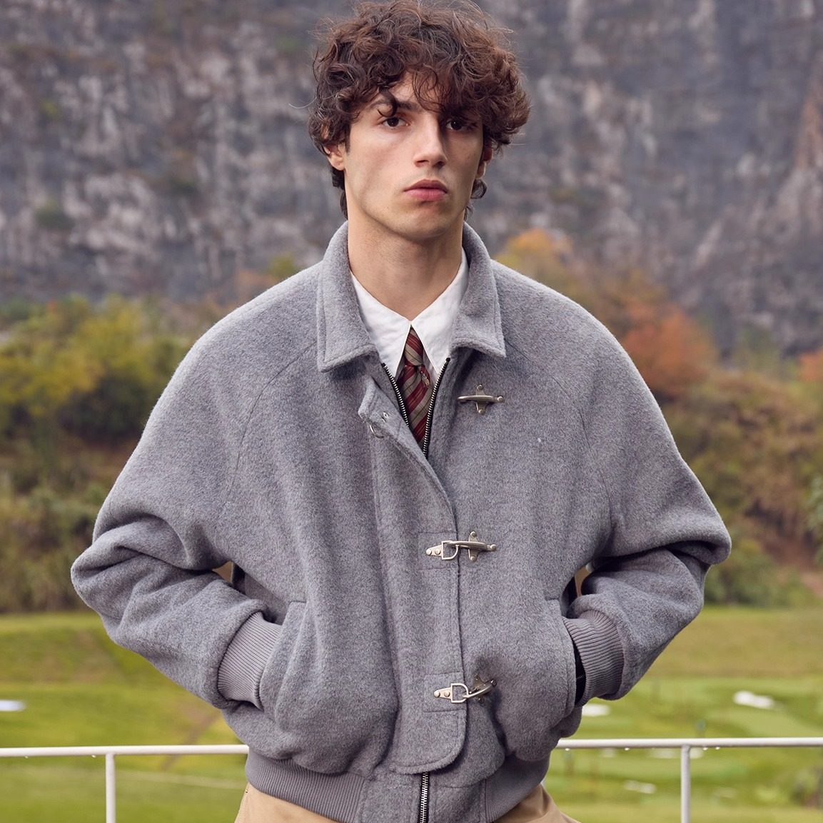 InsGale 25AW Wool Airplane Buckle Lobster Buckle Lapel MA1 Cotton Jacket Boomber
