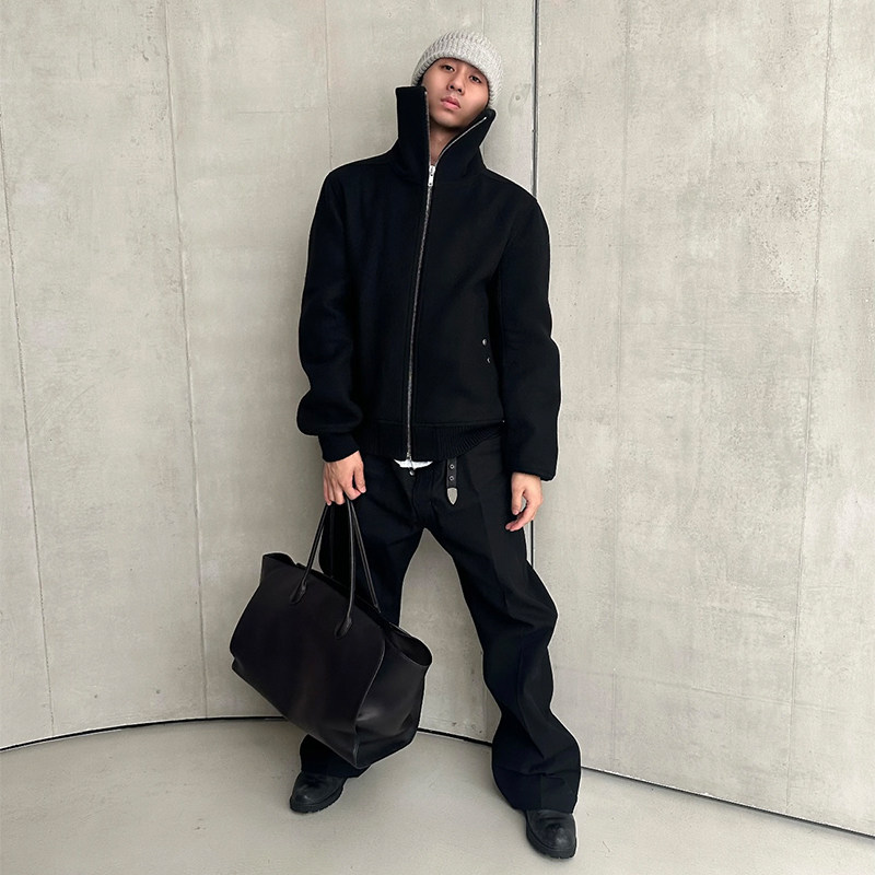 Ro acbt show niche heavyweight stand-up collar turtleneck wool wool pure black zipper jacket old money style