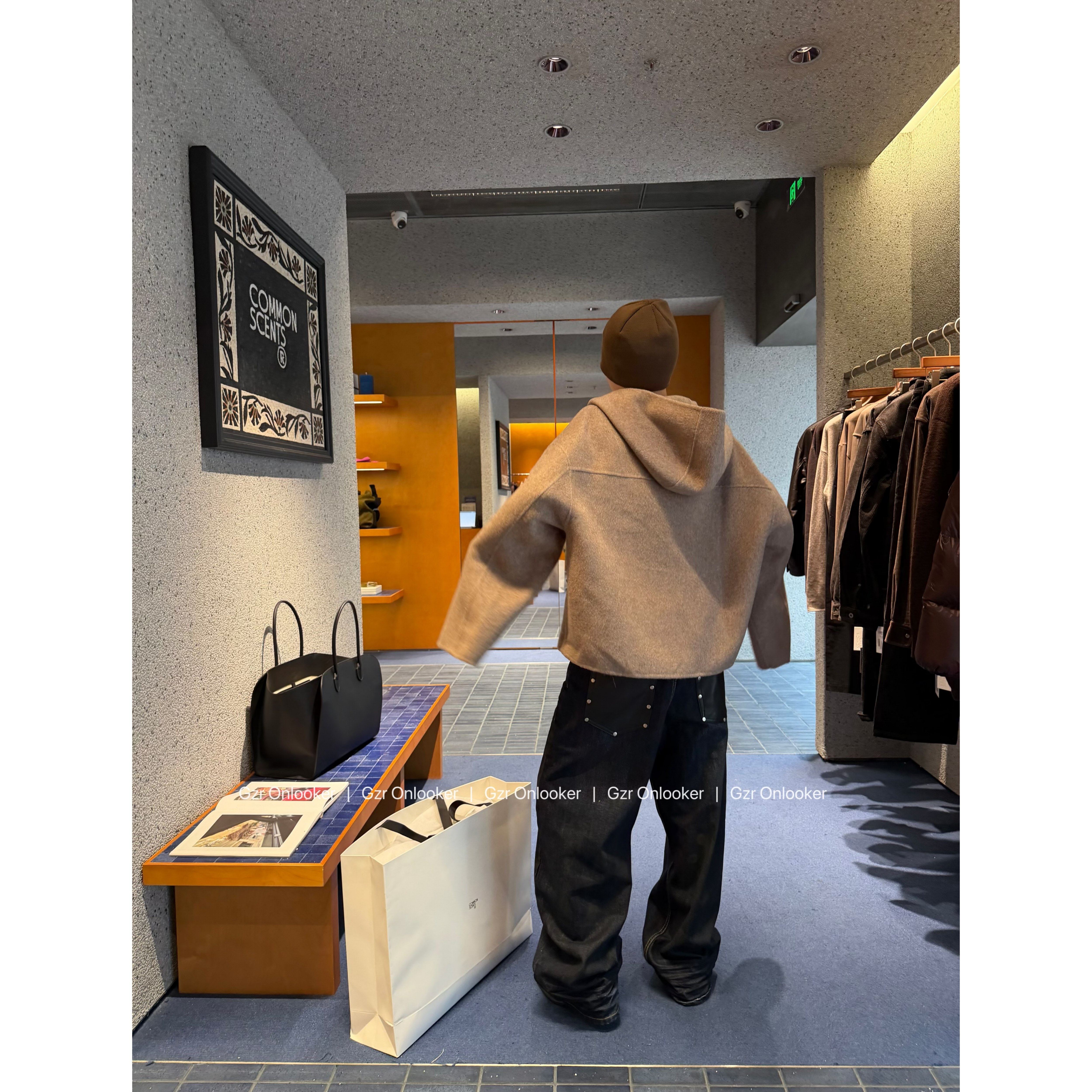 Gzr Onlooker imported wool heavyweight silhouette reversible dweed hooded coat coat