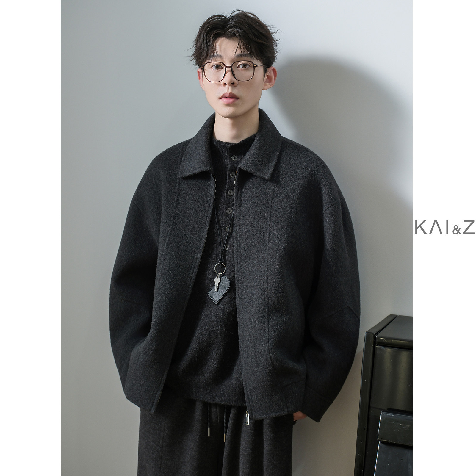 All sheep wool reversible dweed coat men's short autumn and winter 2025 new loose trend winter woolen coat trend