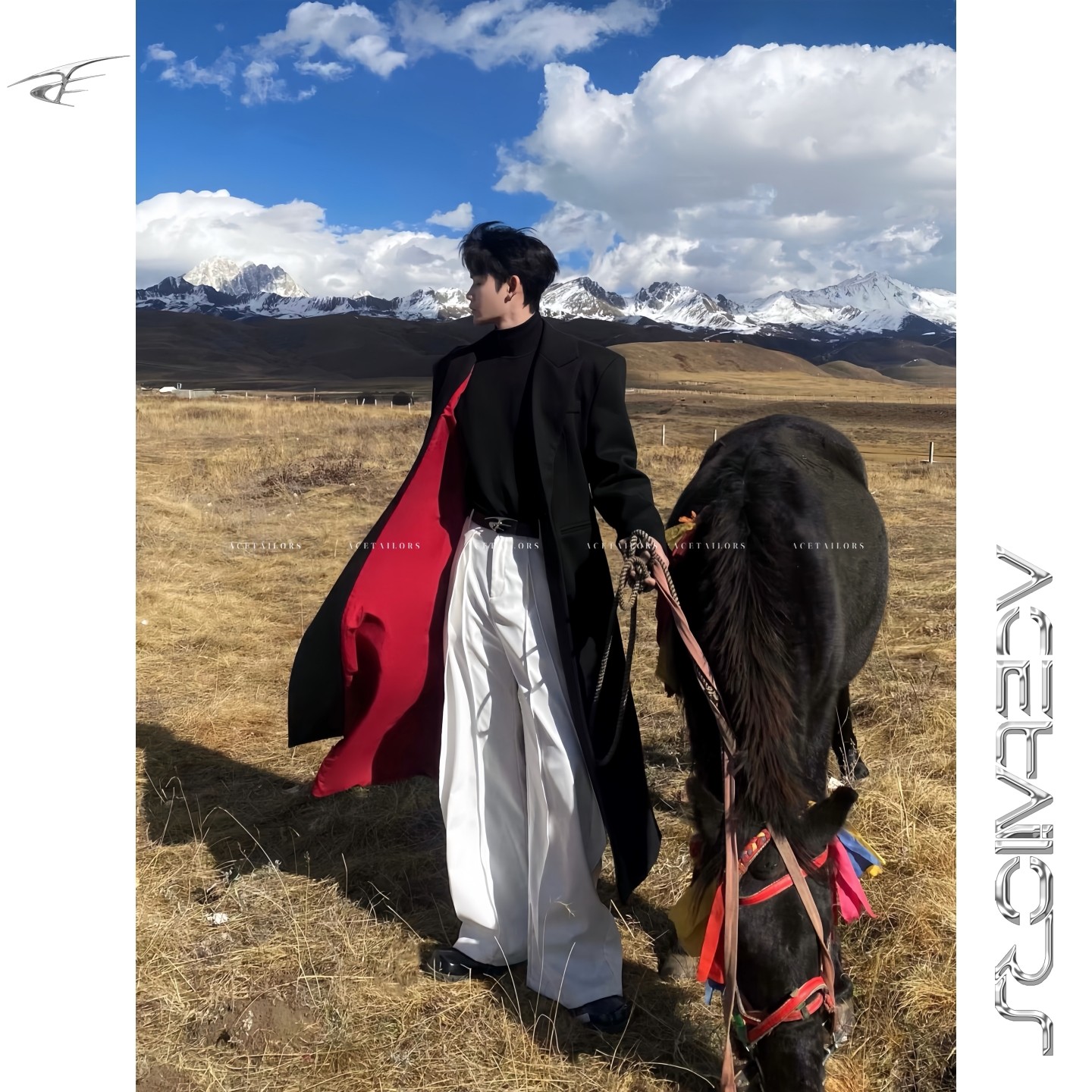 Sir Ace Hepburn's original high-intelligence luxury burgundy coat with a red background men's waist trench coat long blazer