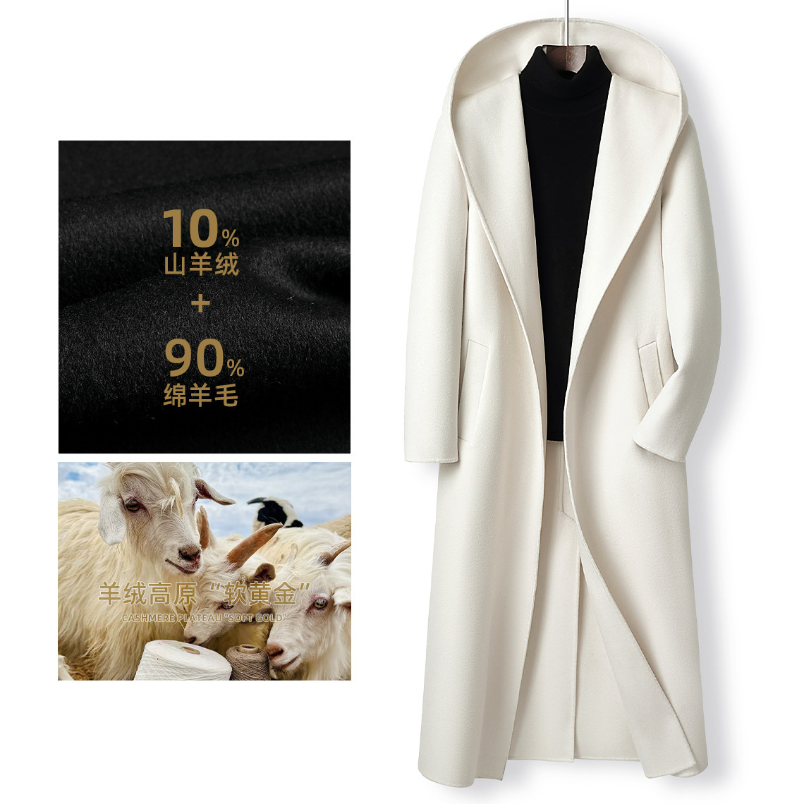 Autumn and winter high-end men's hooded over the knee long bathrobe style reversible cashmere coat woolen trench coat Korean version