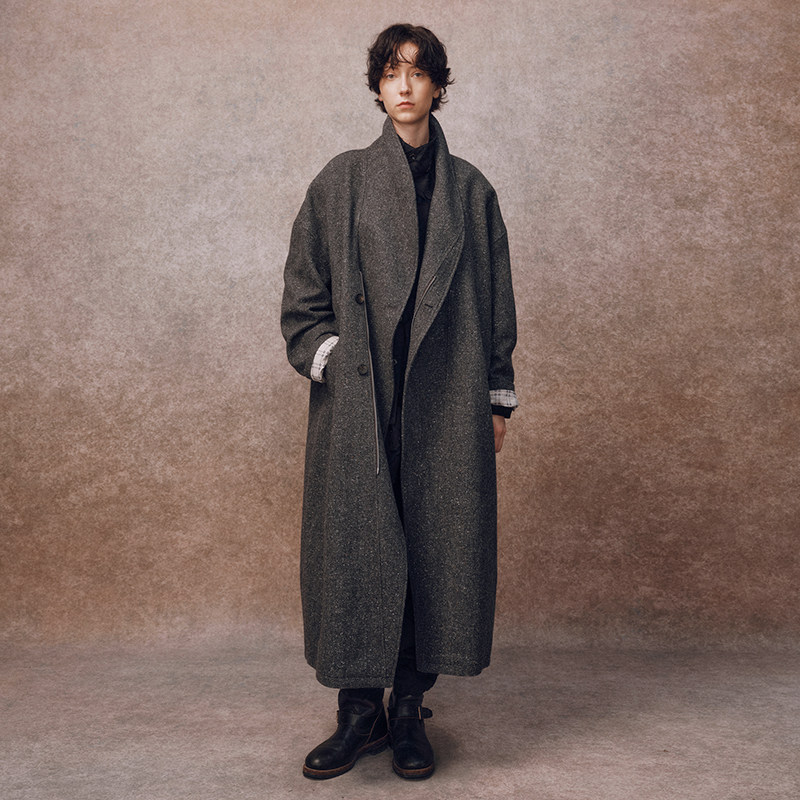 Simple Project* High-neck Wool Coat wool reversible tweed stand-up collar coat