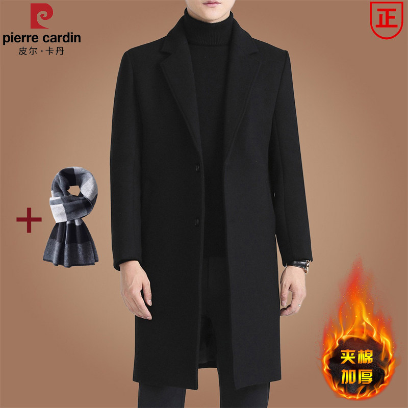 Pierre Cardin's woolen coat, men's mid-length Korean version casual trench coat for young and middle-aged people, winter thickened woolen coat