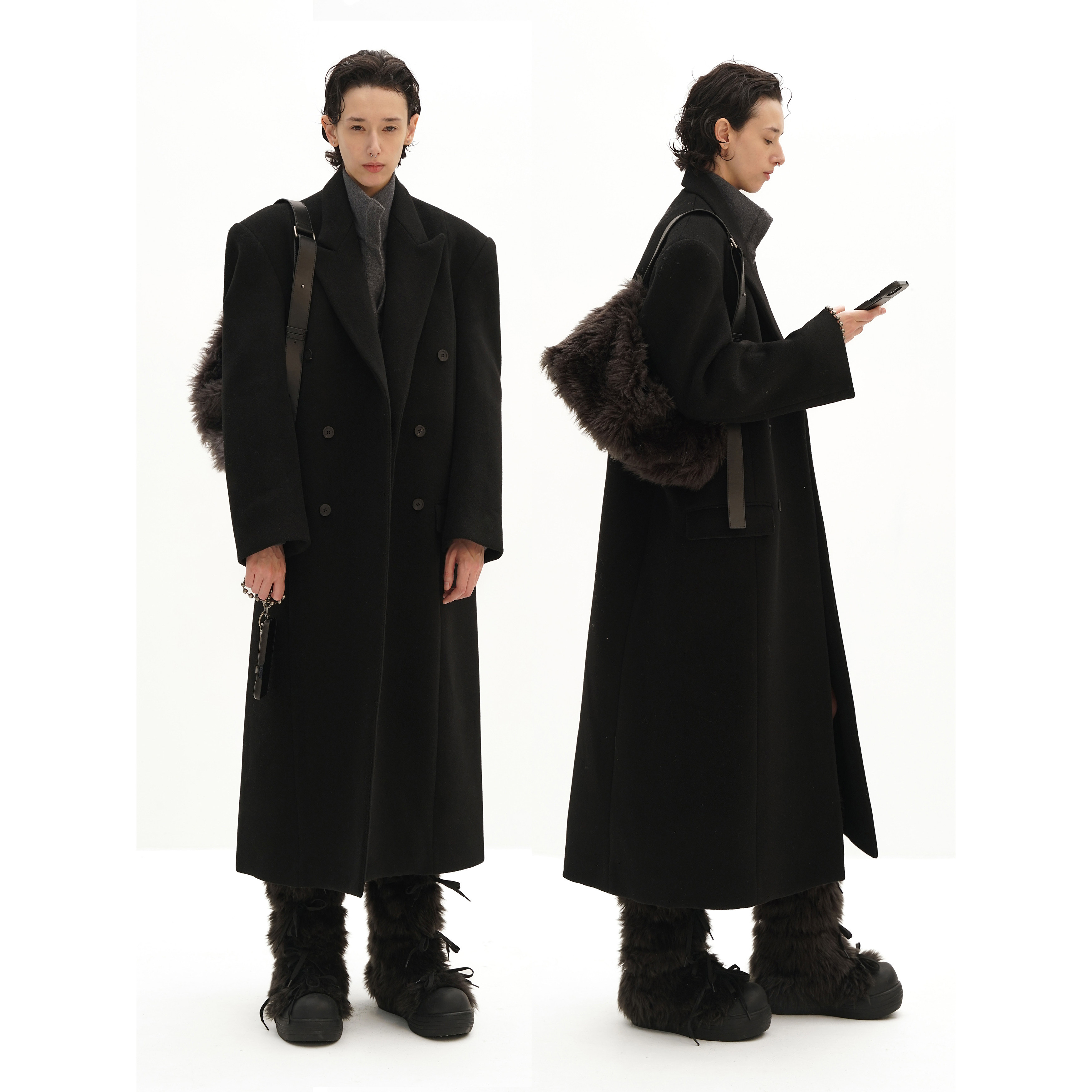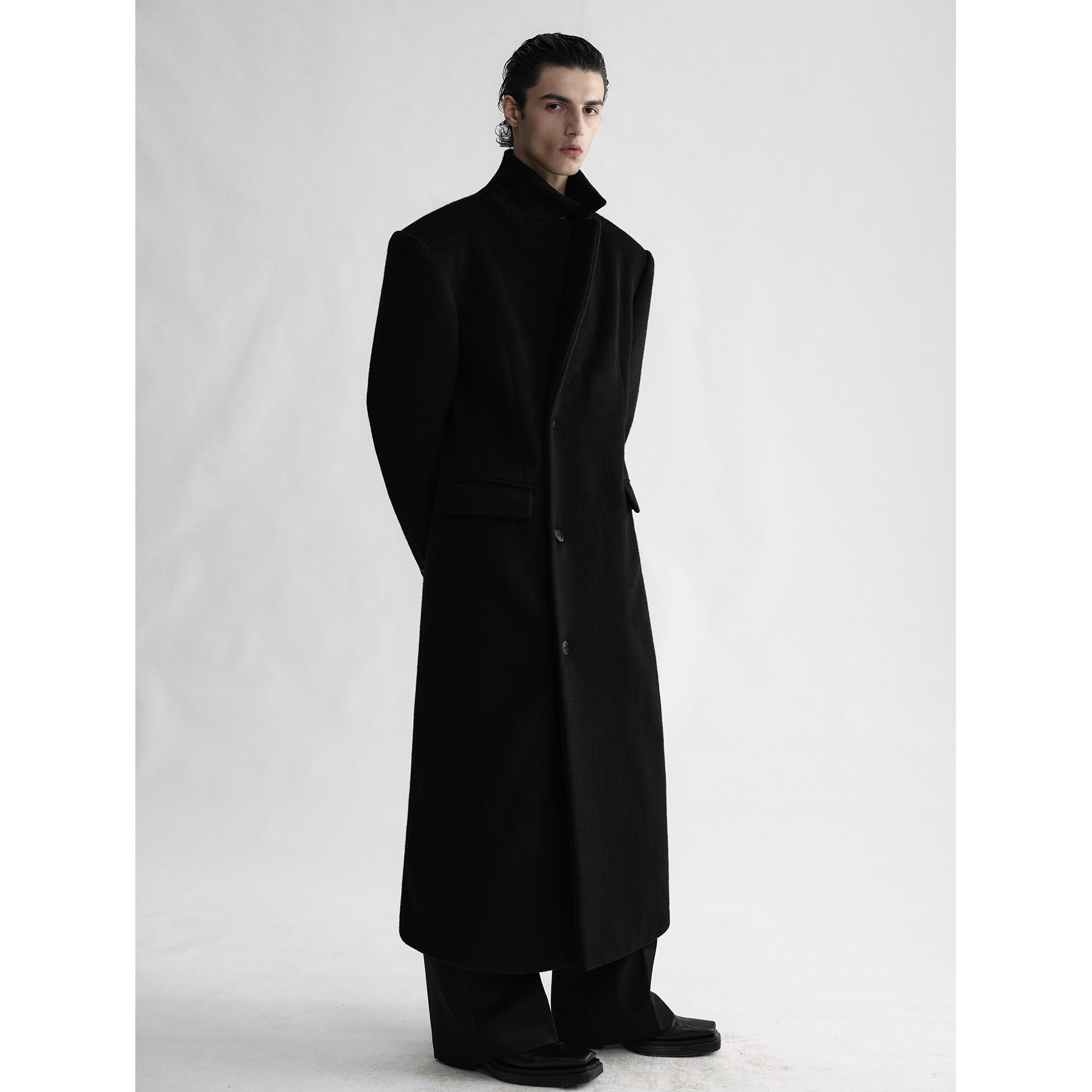 SEHENBLAU Designer Menswear Minimalist waist-cinched black long single-breasted wool coat wool coat woolen coat