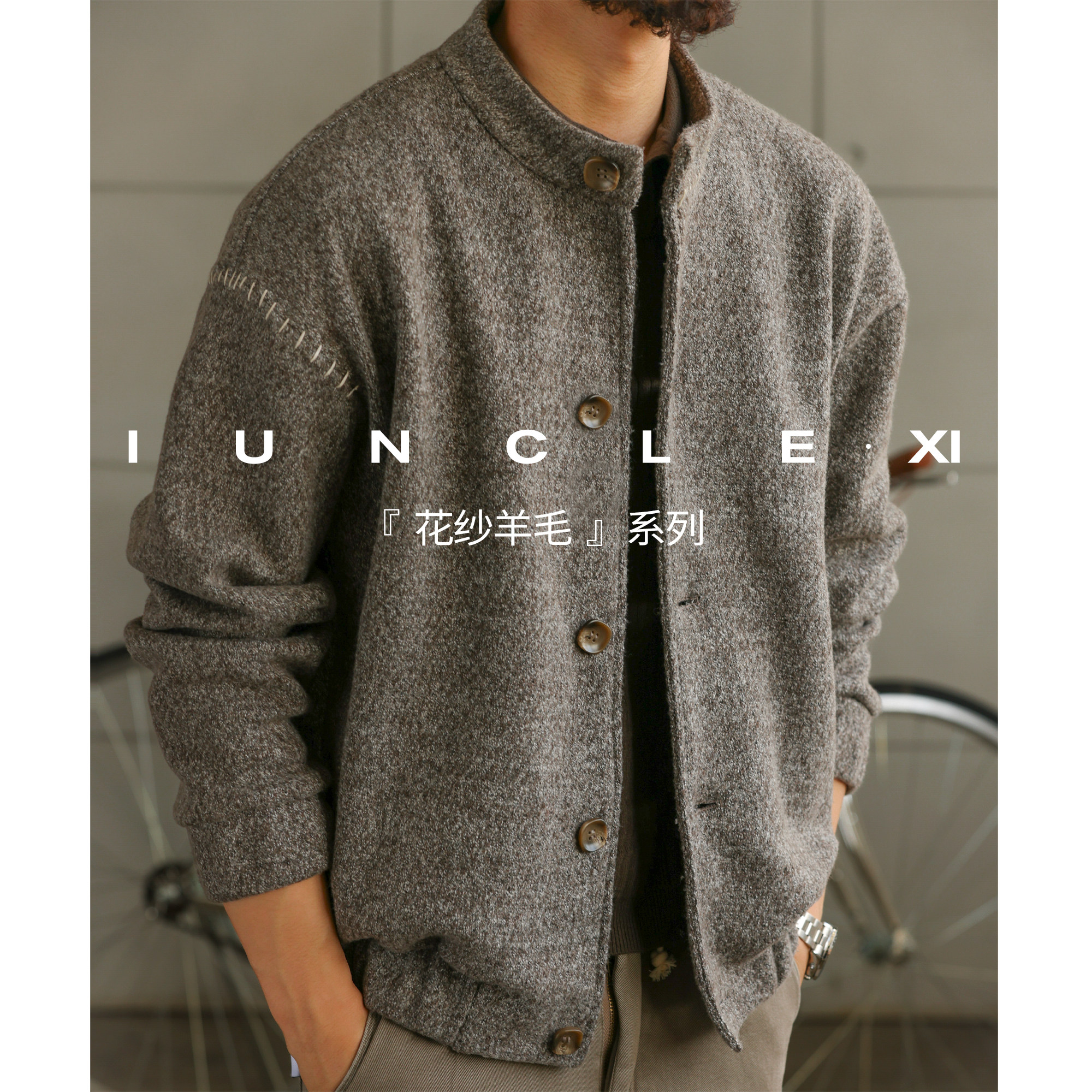 IUNCLEXI [Gentleman's Style] Floral Yarn Wool Blend Woolen Jacket Men's Autumn and Winter Heavy Warm Jacket