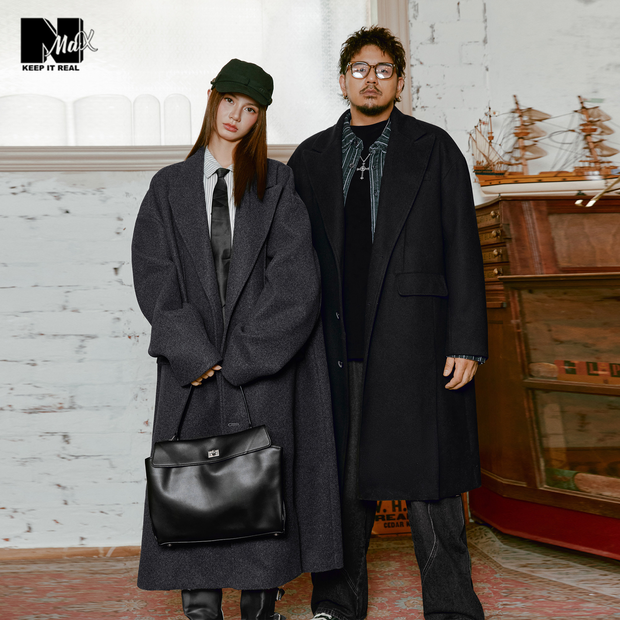 NMAX plus-size trendy men's winter 25 new large lapel solid color mid-length jacket thickened woolen coat