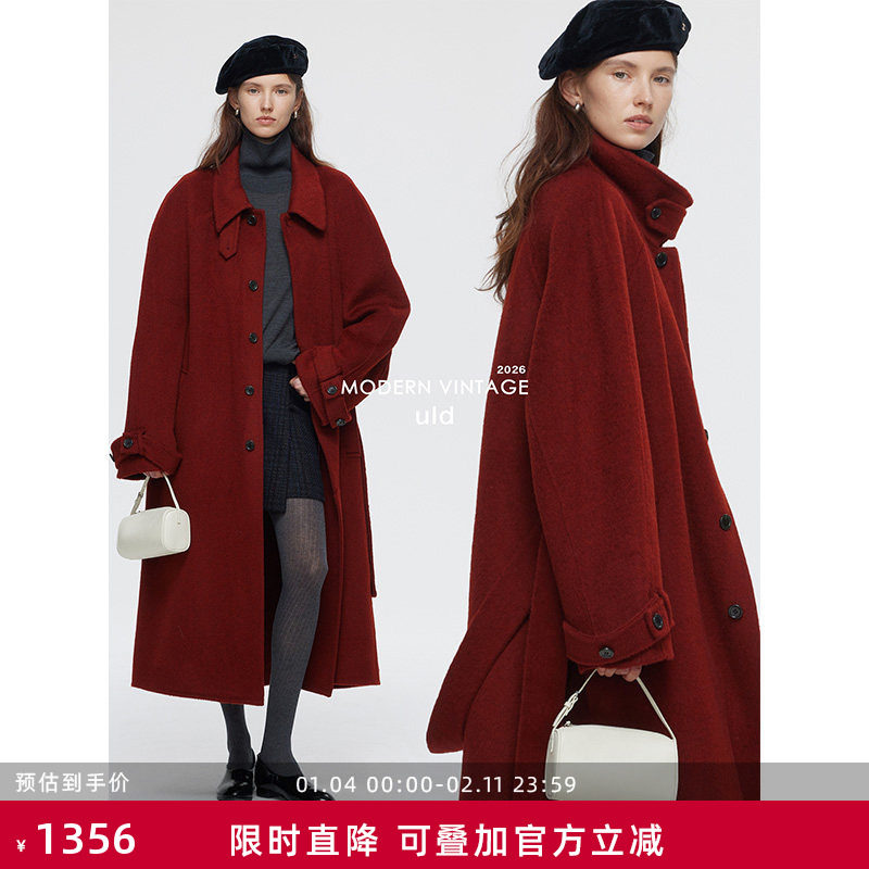 ULD/Double Dan Courtesy Brooklyn Red Double-Sided Squid Coat Women's 2025 Winter New Tweed Jacket