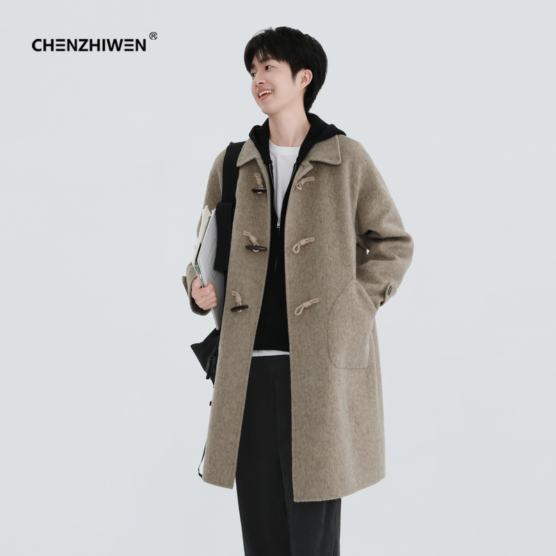 Chen Zhiwen's new winter all-wool double-sided woolen horn buckle lapel mid-length warm coat jacket for men and women