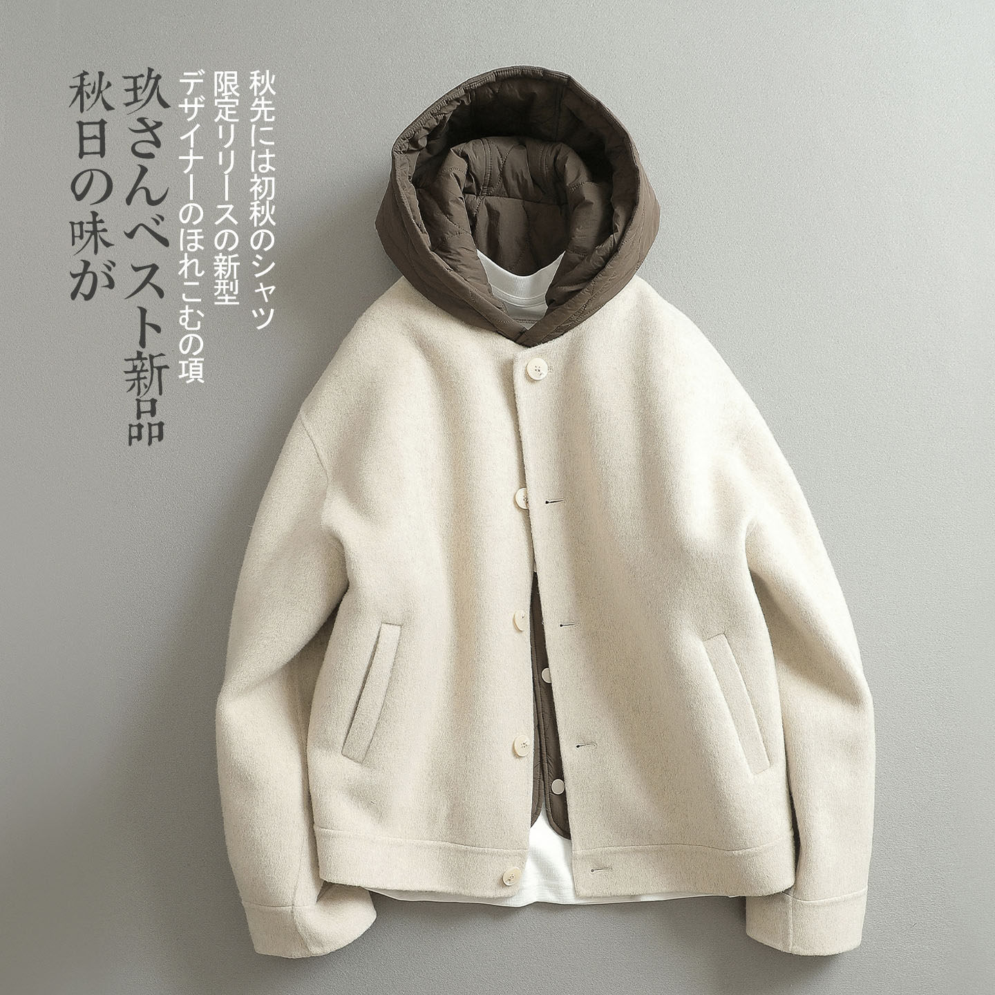 COTTON LAB [Small Fur] cape-type hooded woolen jacket wool coat is the same style for men and women