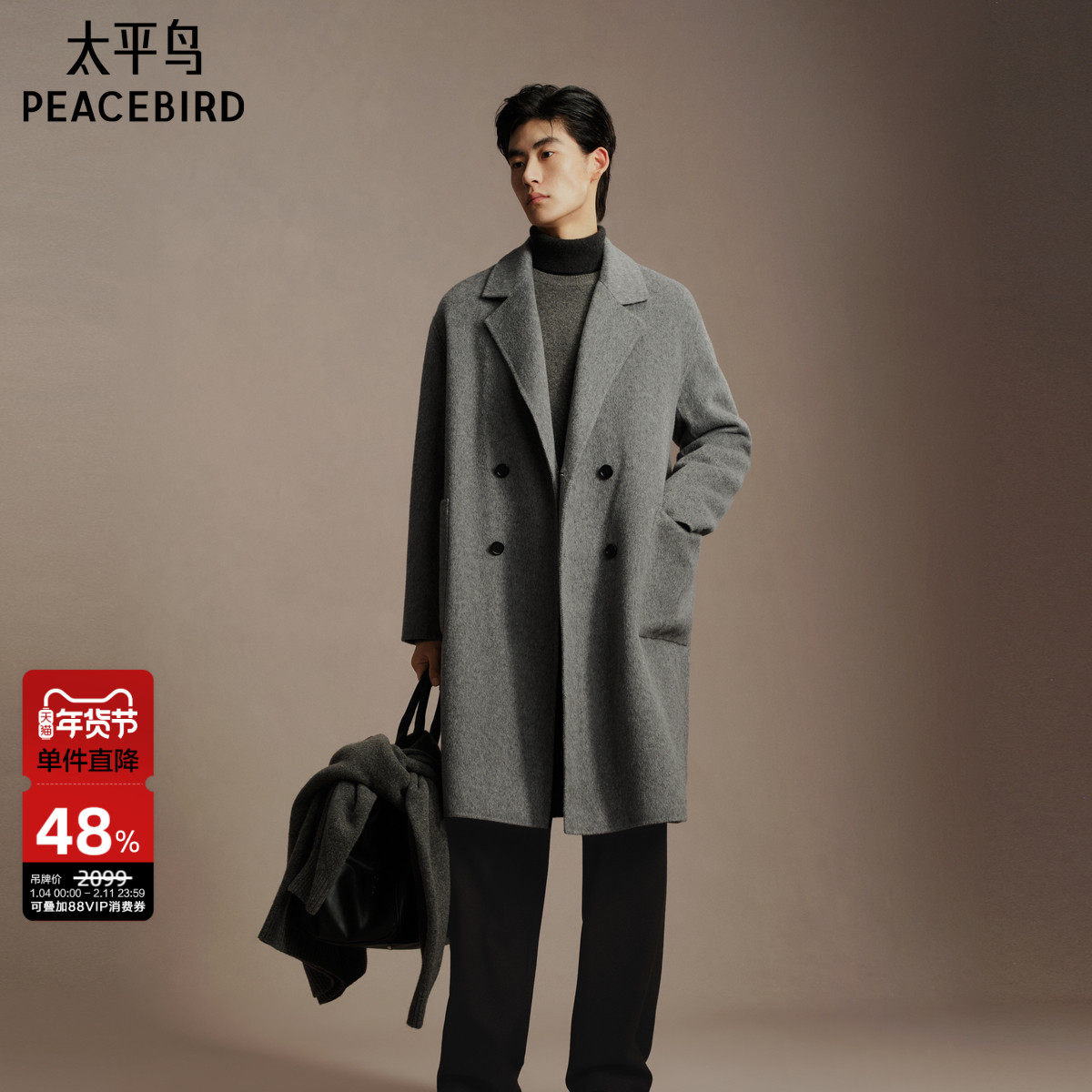 Peacebird men's casual coats loose fashion classic selection wool blend coat men