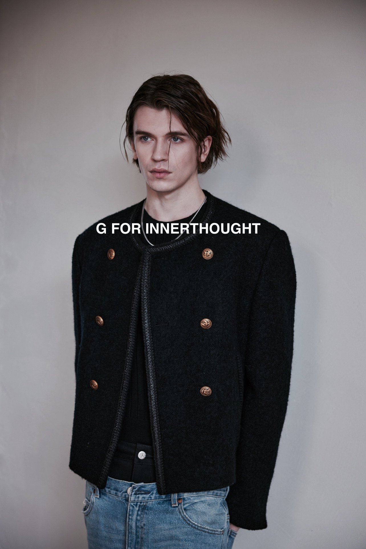 G FOR INNERTHOUGHT japan Bishu wool small fragrance woolen jacket black jacket men's short