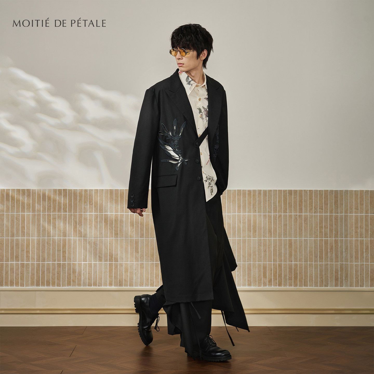 Half petal "rosemary" 100% worsted wool floral openwork embroidered coat Dark silhouette coat