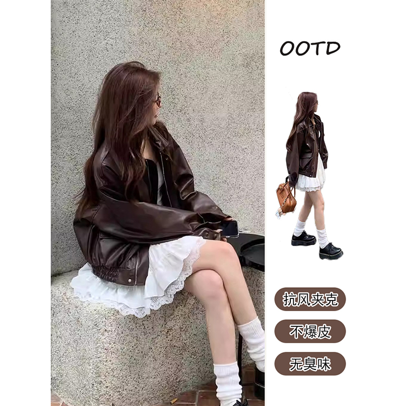 Nuxin Maillard Brown American Retro Loose High-End PU Leather Jacket Jacket Women's 2025 Spring and Autumn New Style