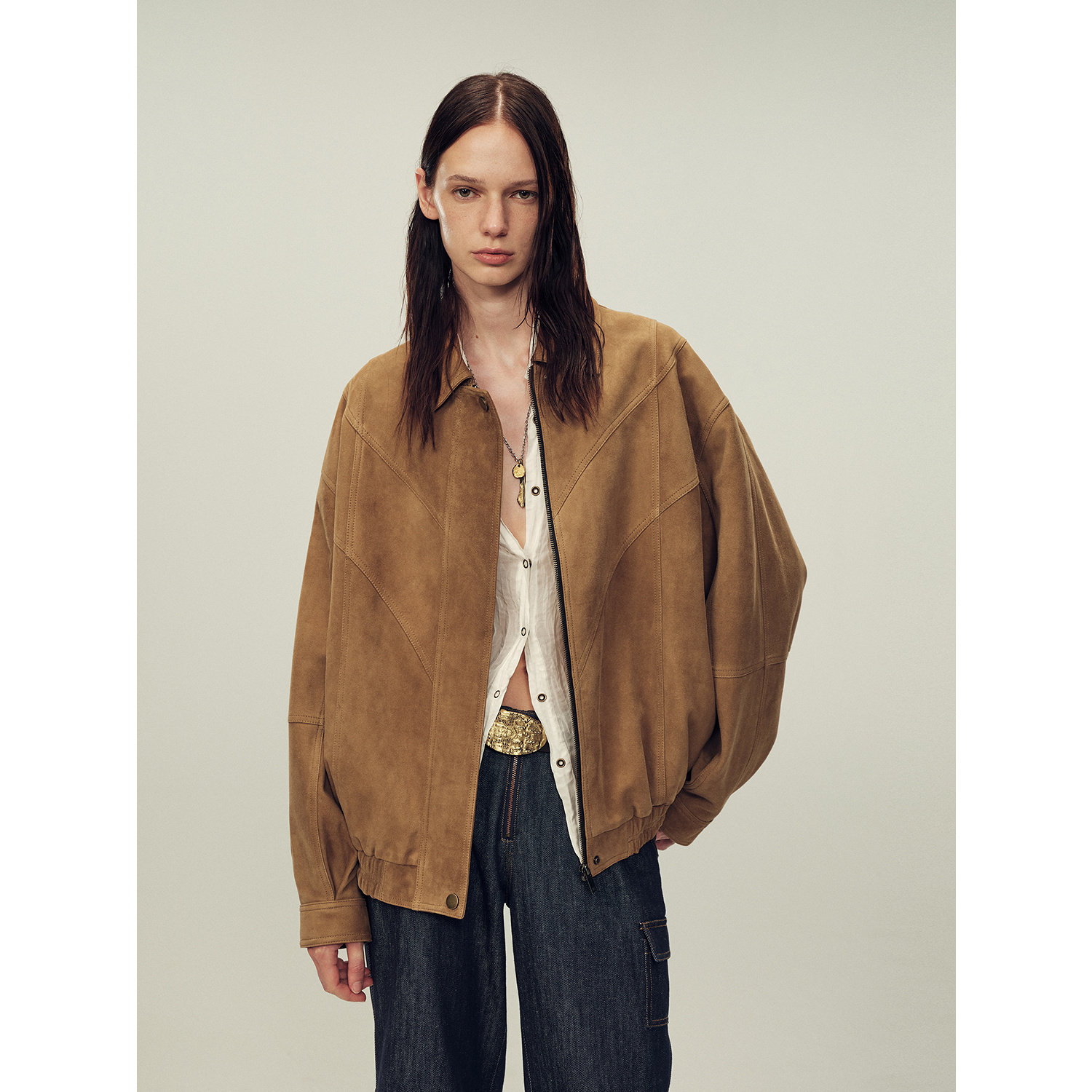 Fall 2026 Maillard wears a vintage brown leather jacket jacket for women, a complete set of OOTD women