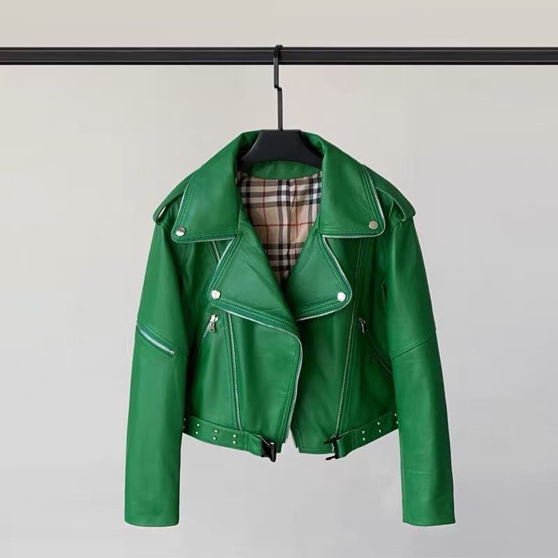 Black leather jacket women's 2026 new spring and autumn short eco-friendly sheepskin high-end retro lapel motorcycle leather jacket