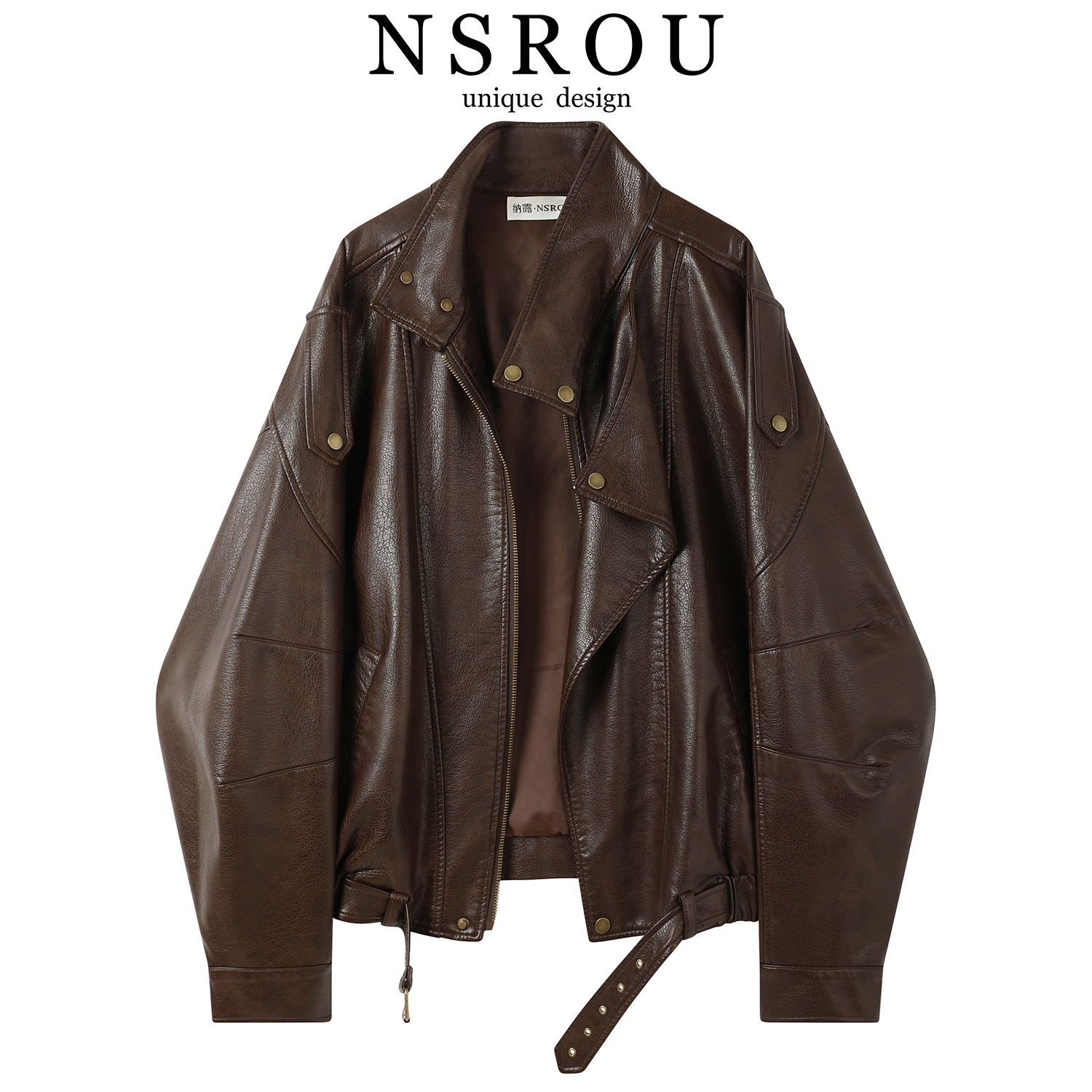 Brown leather jacket spring and autumn 2025 new PU leather jacket American retro cool wind bell Chuxi is the same style