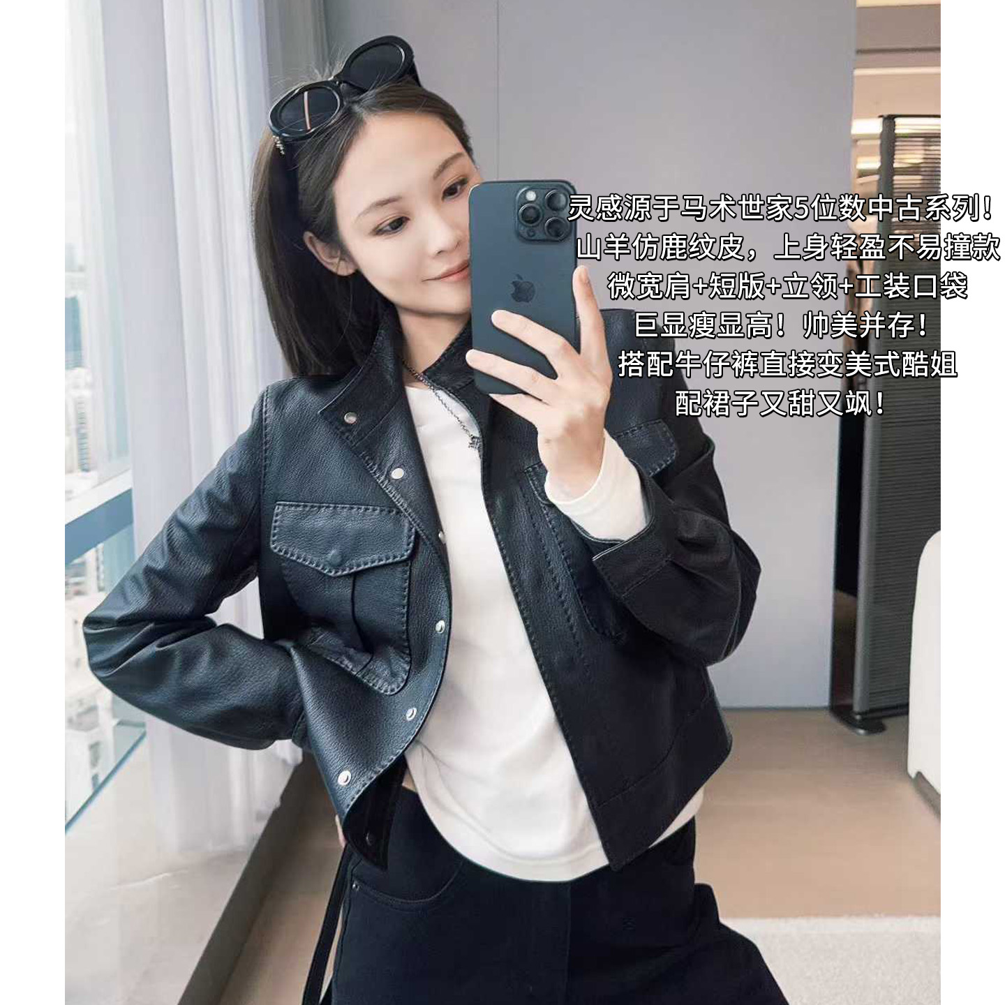 MEIYANG second-hand leather jacket modern goat imitation deer print leather stand-up collar short jacket - Tuesday