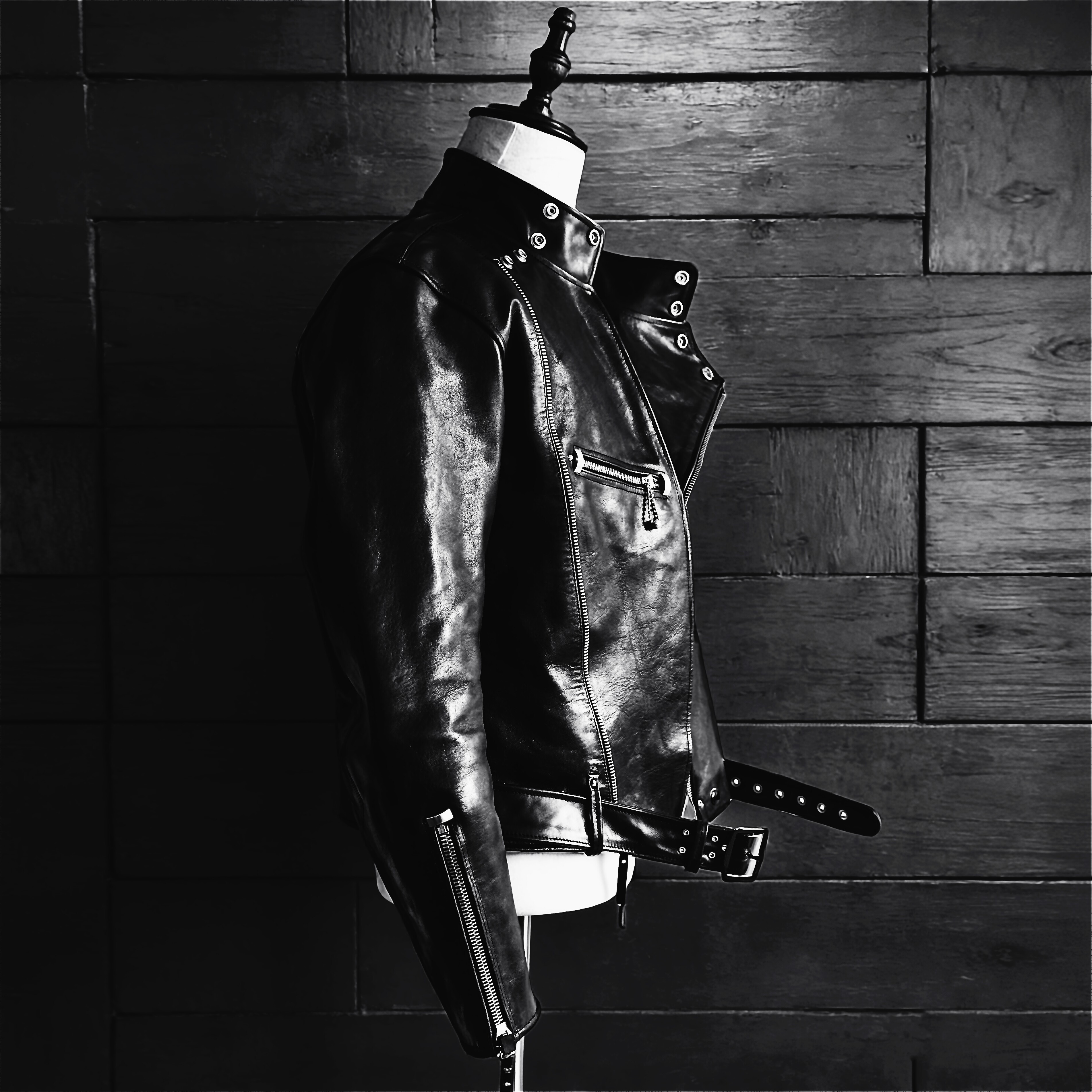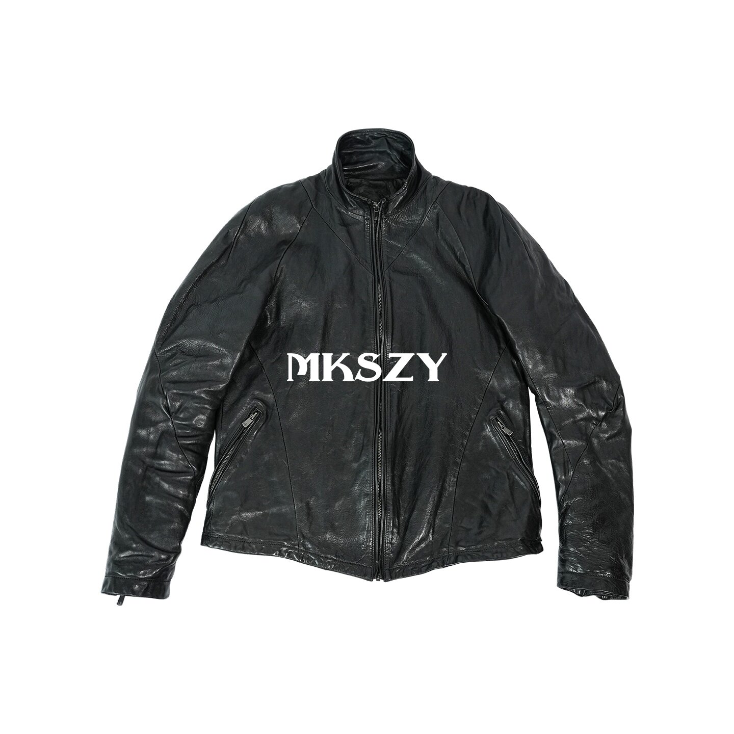 MKSZY Top Layer Horseskin Ready-to-Wear Water Dyeing Fitted Version Knight Leather Jacket Old Retro Dark Deconstructed Leather Jacket