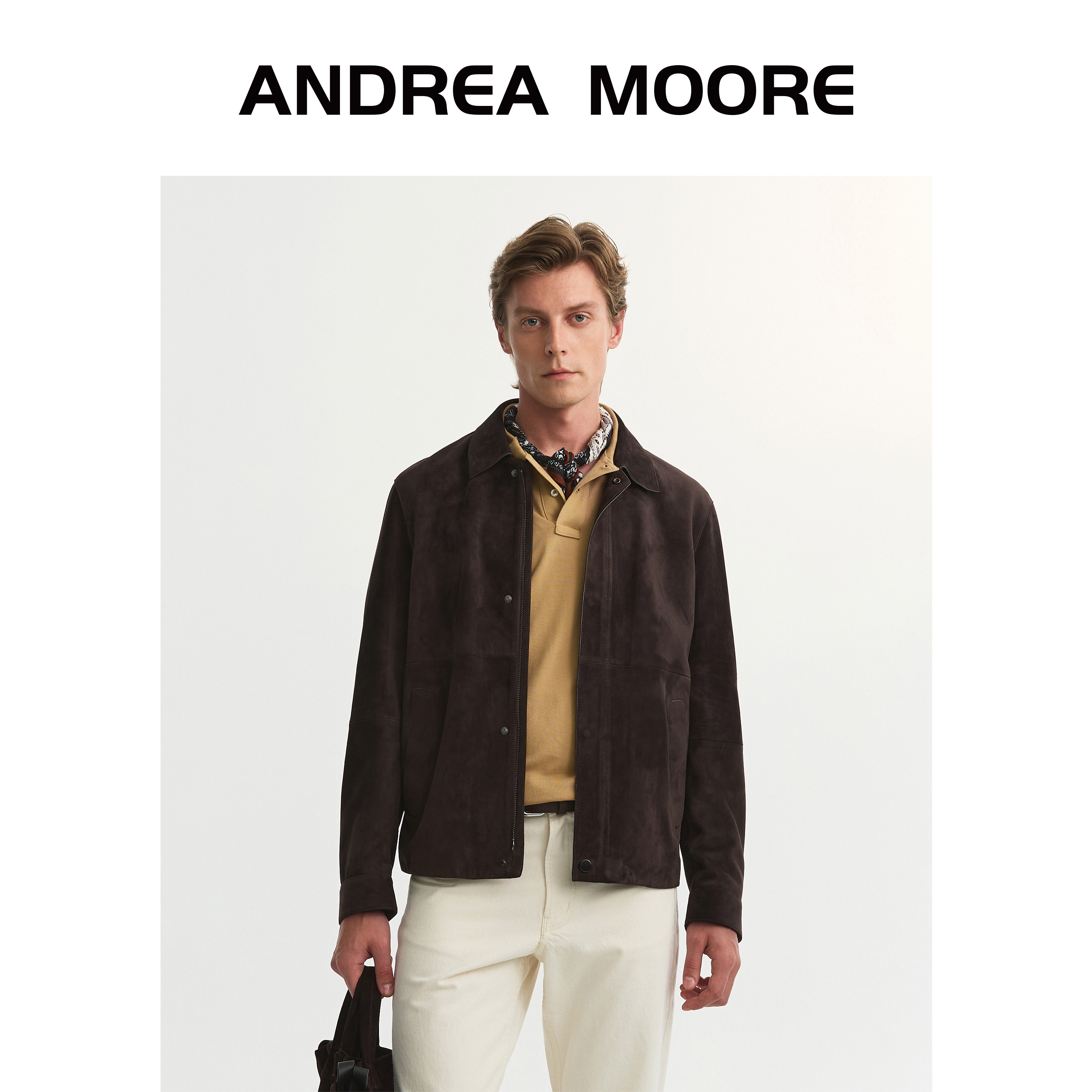 ANDREA MOORE. Moore men's leather jacket suede sheepskin jacket with lapels casual