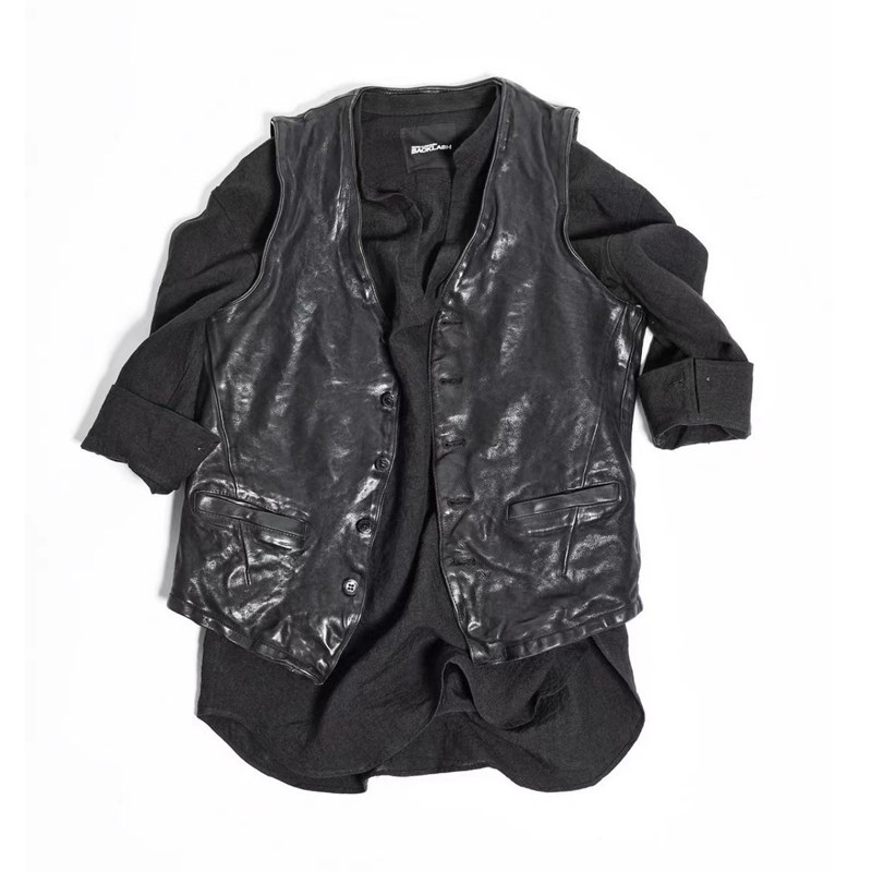 Acme cultum oil wax goatskin pleated texture stand-up neck cropped knight leather men's biker jacket