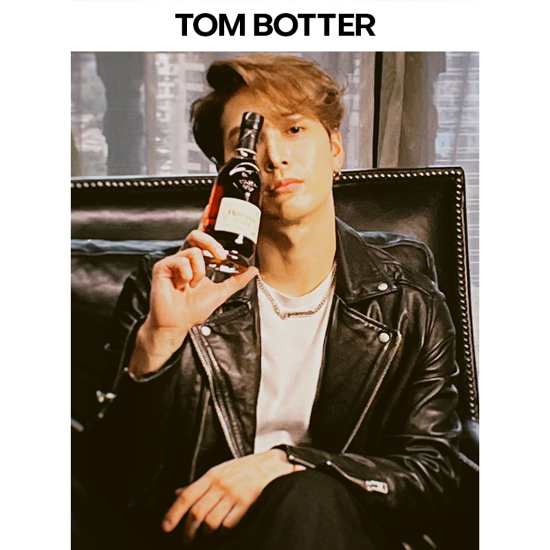 TOM BOTTER Wang Jiaer same style vegetable-tanned sheepskin motorcycle jacket jacket men's leather leather jacket diagonal zipper trend
