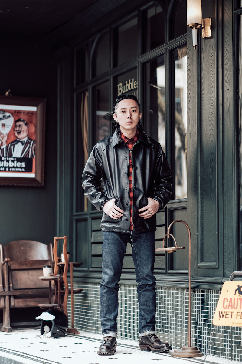 Texture Tenjin SJ01 thick calf skin water dyed oil wax top layer calf leather coach jacket skateboard leather jacket