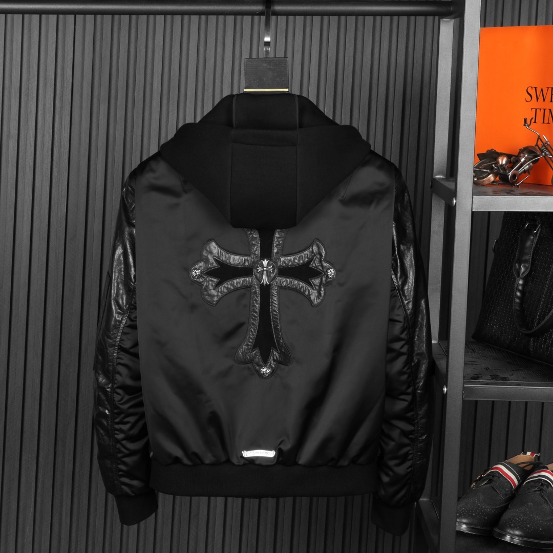 Men's oil wax goat leather spring spliced satin ni hooded leather jacket casual leather jacket embroidered fashion leather jacket