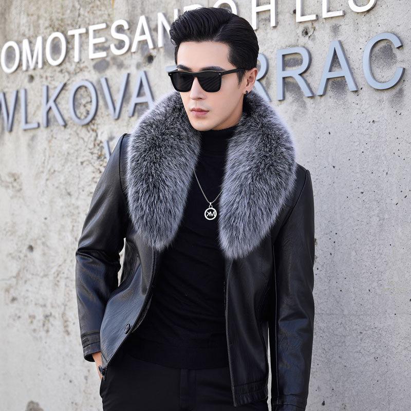 Genuine leather men's leather jacket black mink fur collar down liner leather jacket 2025 winter new high-end sheepskin jacket
