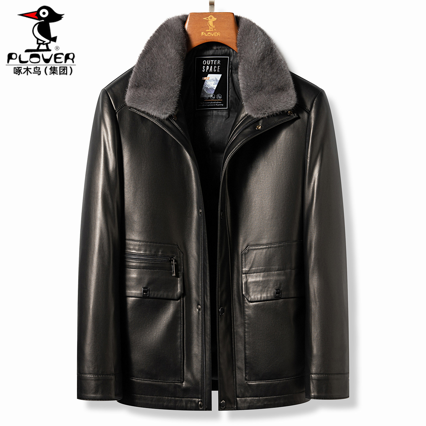 Middle-aged and elderly leather coat male father plush thickened Haining genuine fur coat disassembly jacket jacket mink