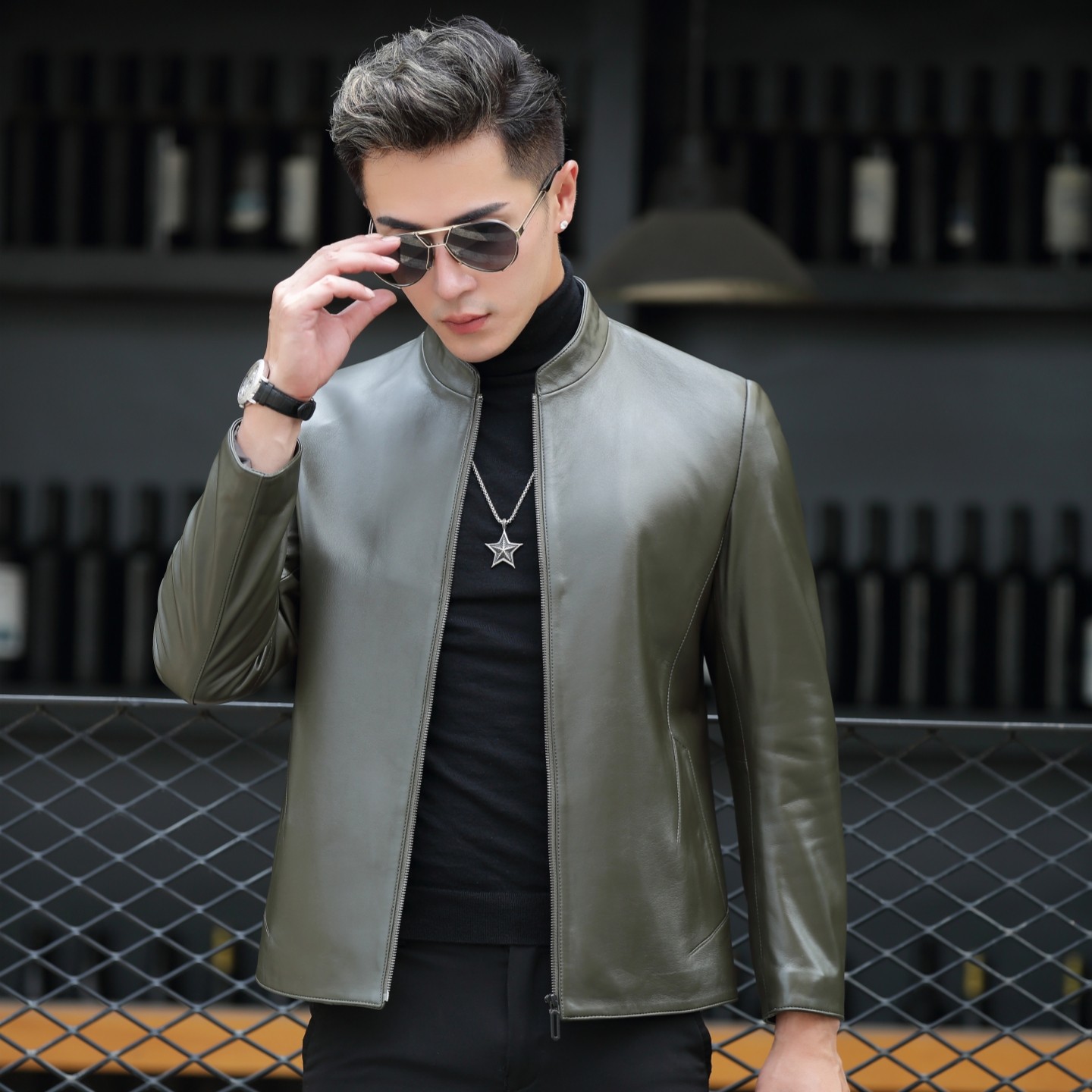 Haining genuine leather jacket, men's sheep leather, handsome motorcycle leather jacket, fashion casual stand-up collar, short spring and autumn jackets, trendy