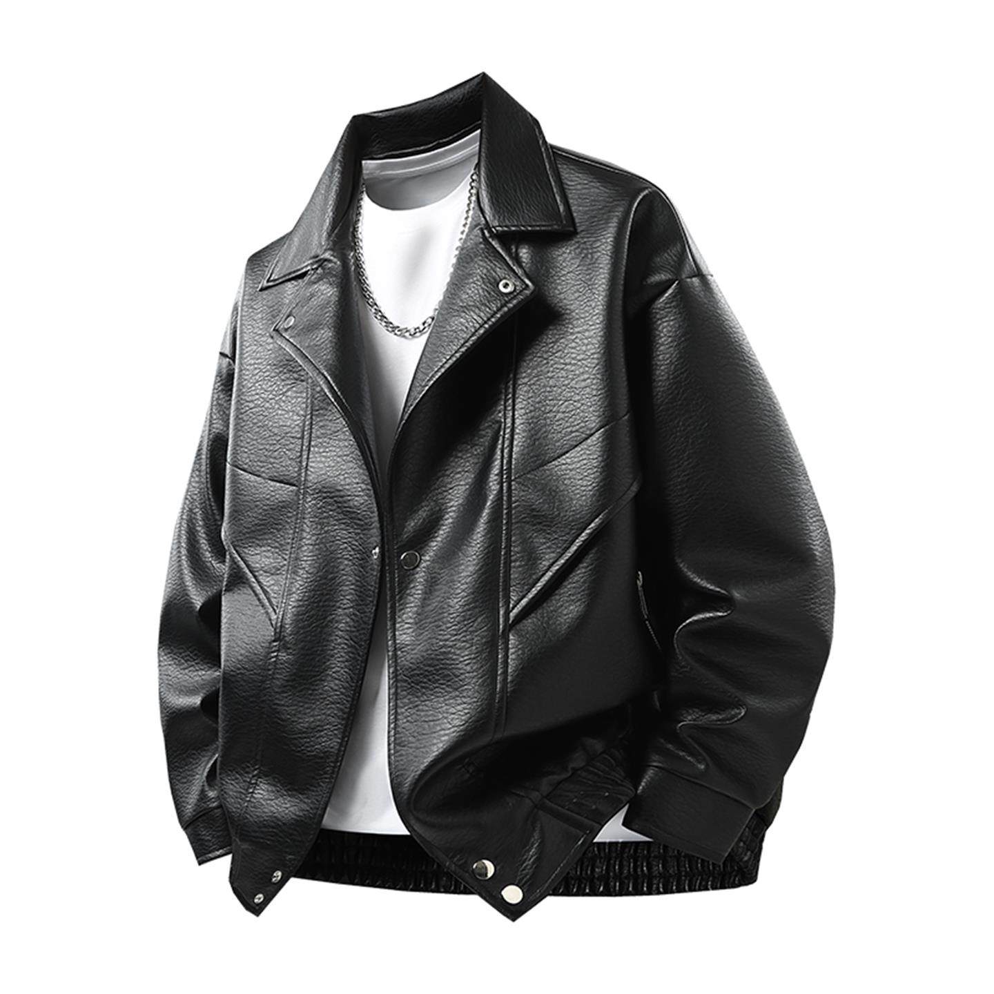 Slim leather jacket men's Korean version handsome 2025 new youth trend lapel jacket with fleece and thickened motorcycle leather jacket