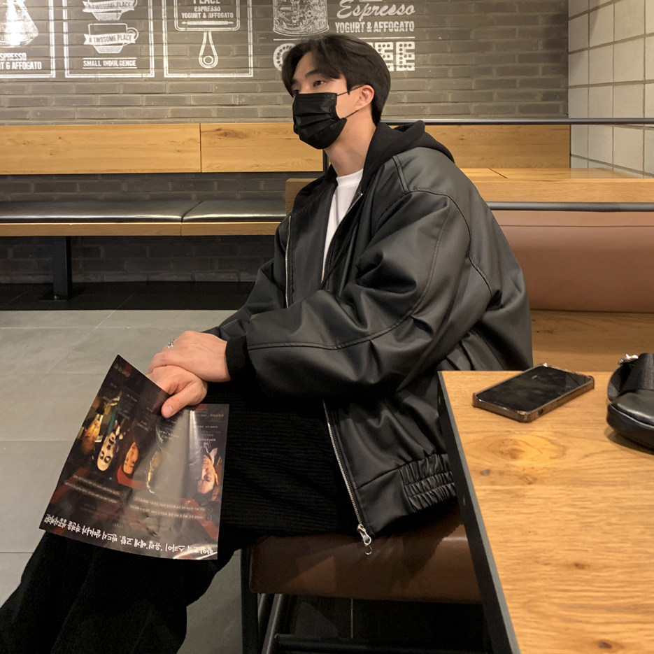MRCYC ruffian handsome hat leather jacket men's spring new loose top Korean trend high-end leather jacket