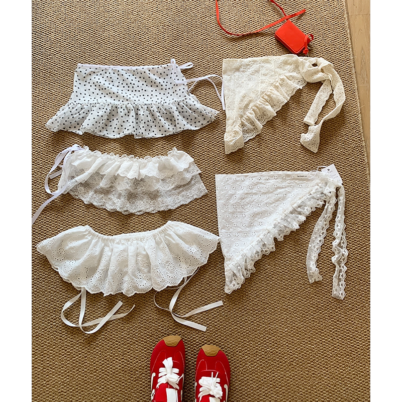Korean atmosphere white lace butt curtain women's 2026 new layered layered belt short belt decoration trend