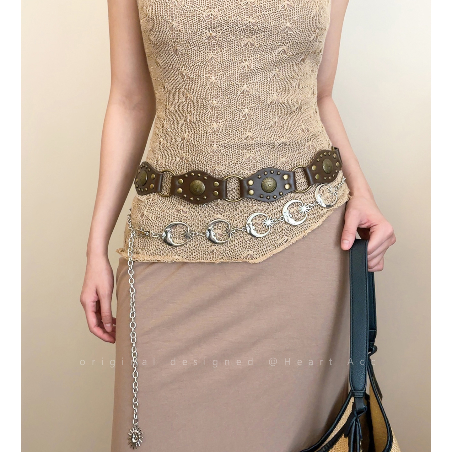 American retro Y2K belt women's 2025 new ethnic style belt with jeans belt high-end brown