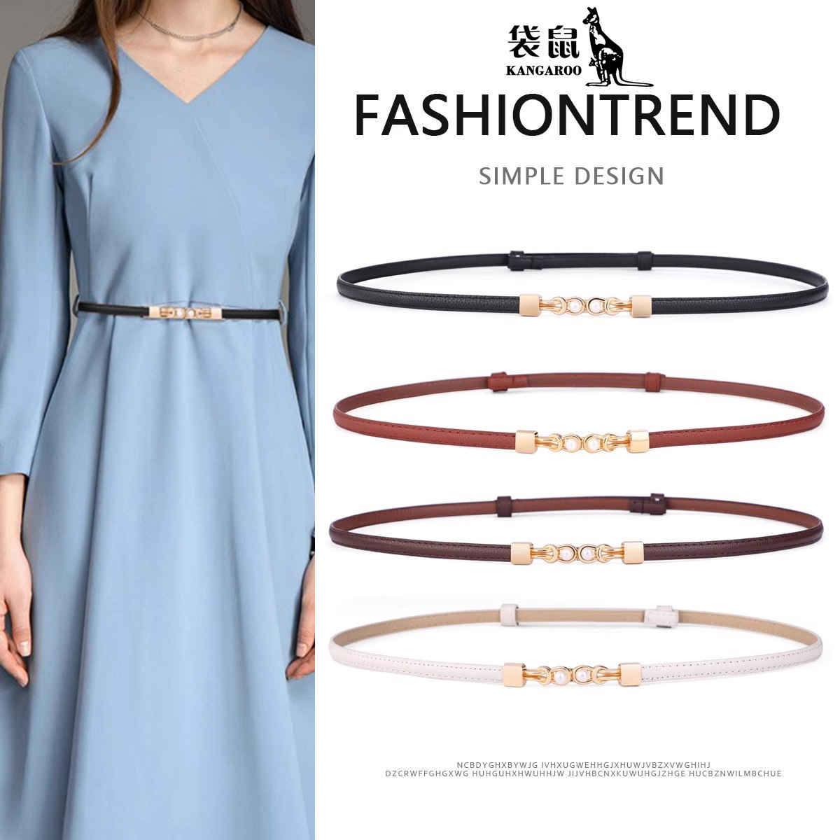 Kangaroo belt women's thin belt genuine leather fashion decoration waistband belt with dress waist cinching ladies waist chain