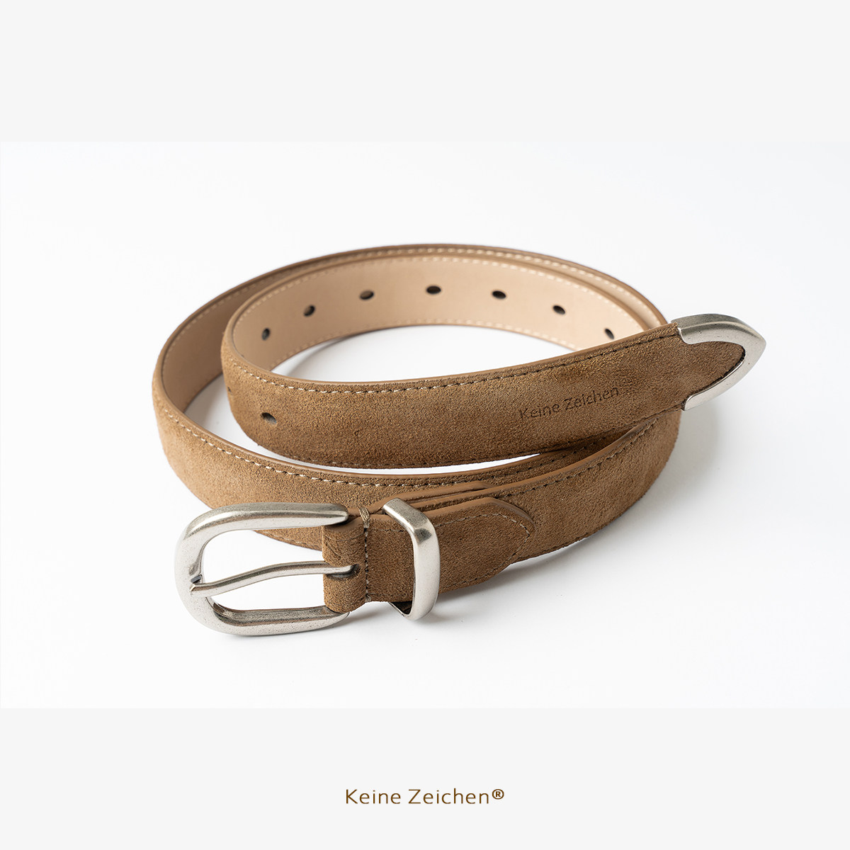 NO LOGO / Cow suede texture retro western Maillard old money style simple belt belt