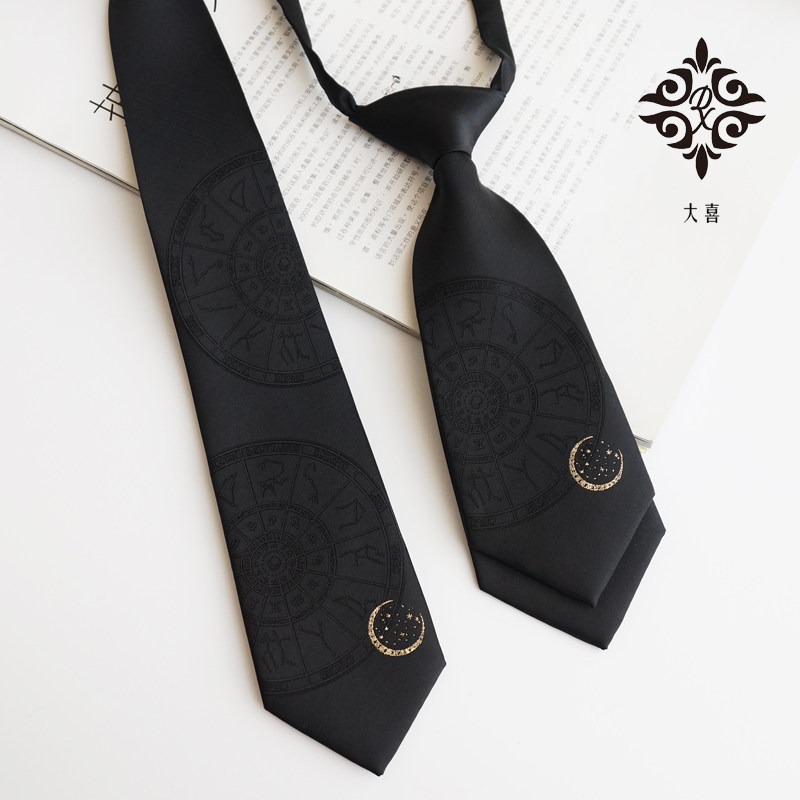 Daxi [Zodiac Constellation] hot stamped version black couple small tie men's and women's double-layer astrolabe moon coming-of-age gift