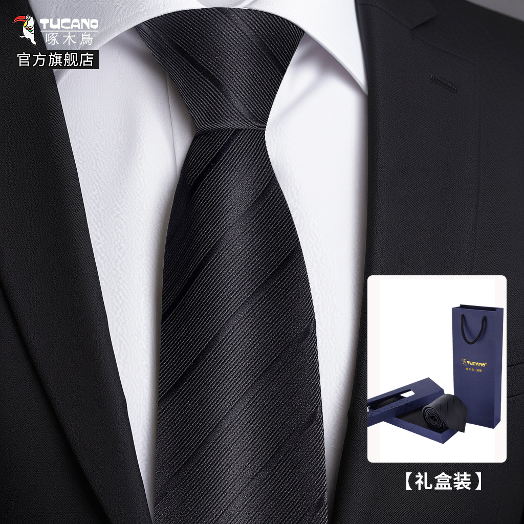 Woodpecker tie men's formal men's business black suit shirt zipless wedding groom high-class