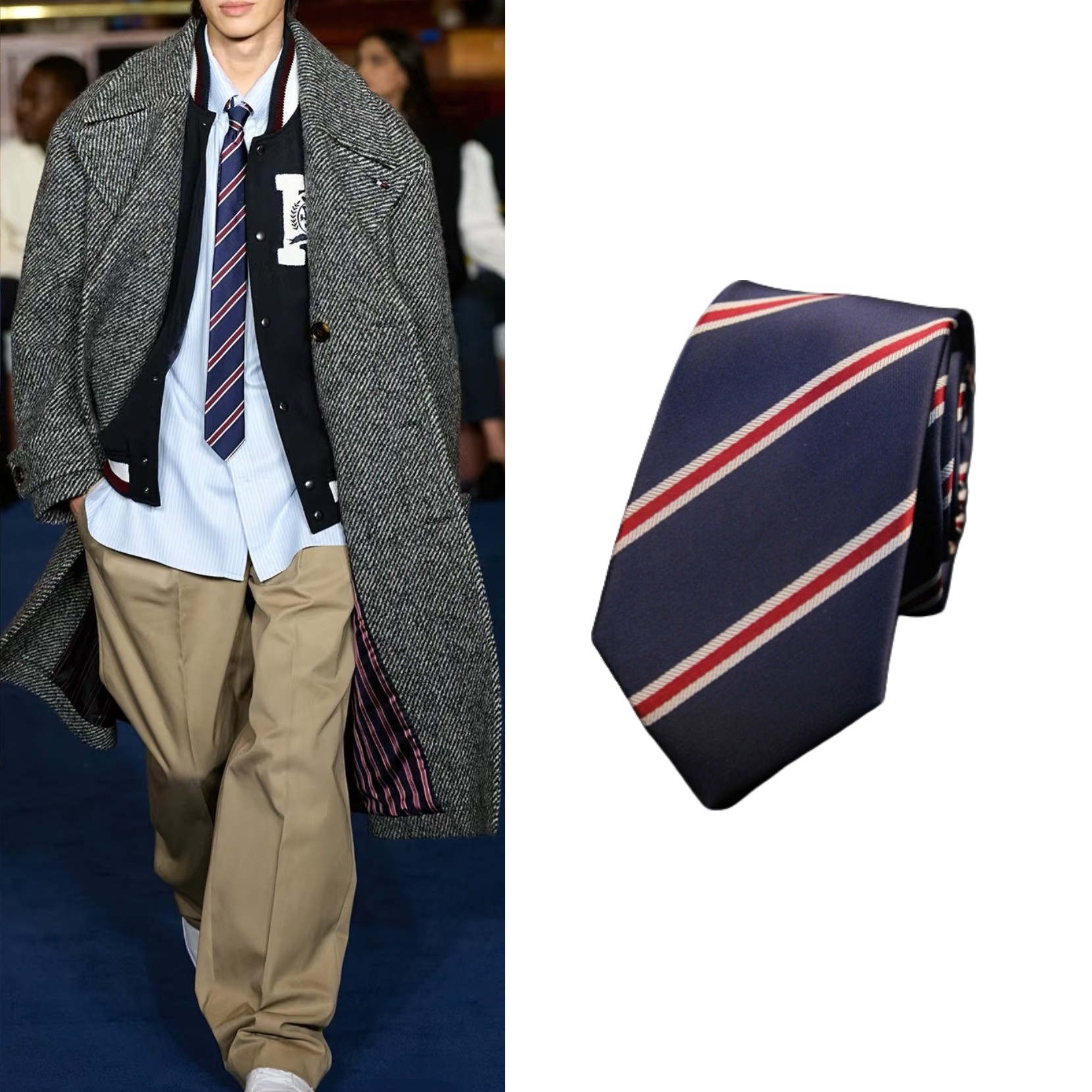 The same 6cm narrow navy blue red striped tie men's casual trend hand-tied/zipper knot-free