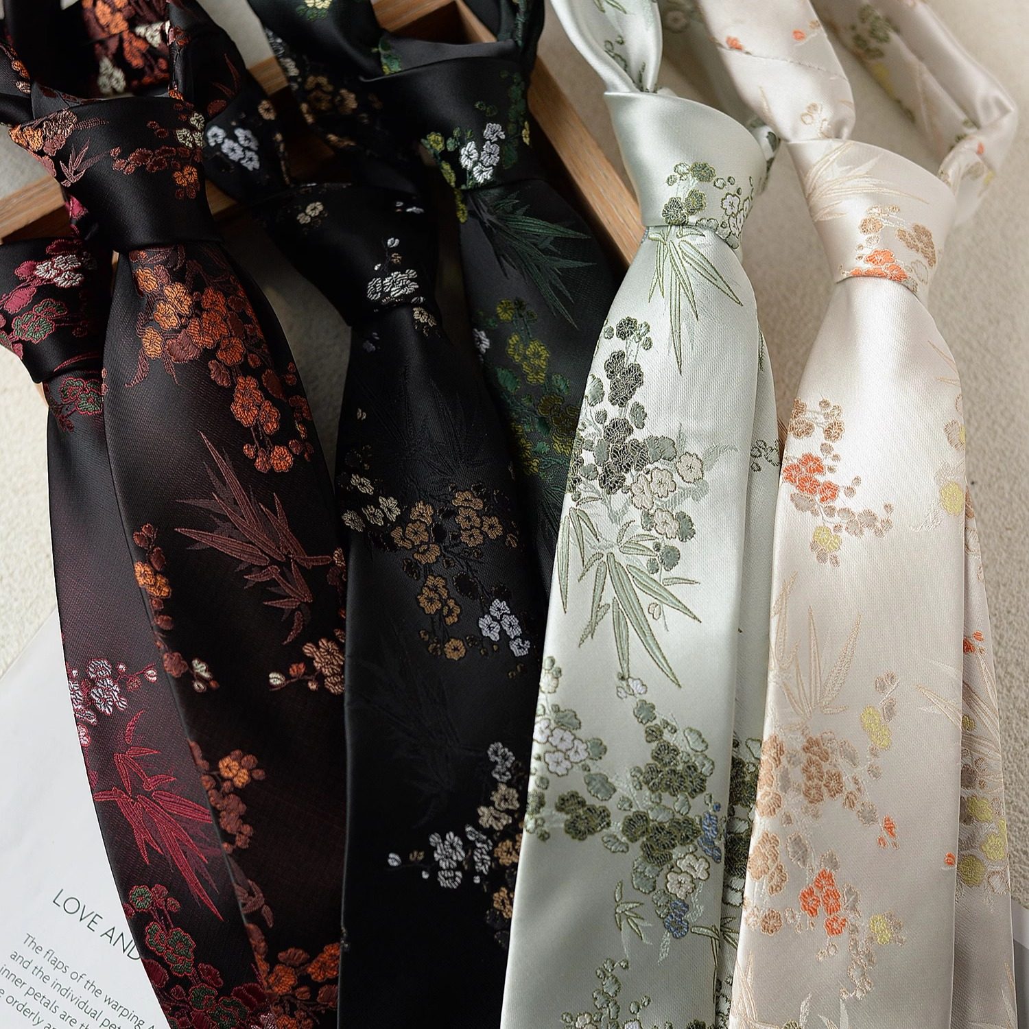 New Chinese tie, retro versatile, high-end suit shirt, women's and men's literary and luxurious, bamboo leaf pattern, hand-tied