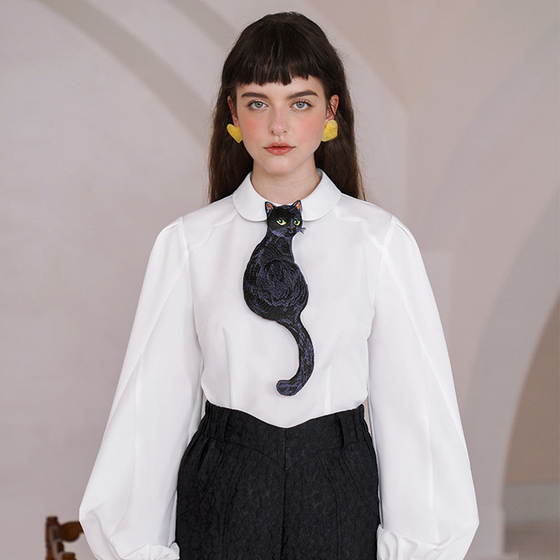 Kamo original design tie black cat series French retro niche design sense bow tie woman has personality