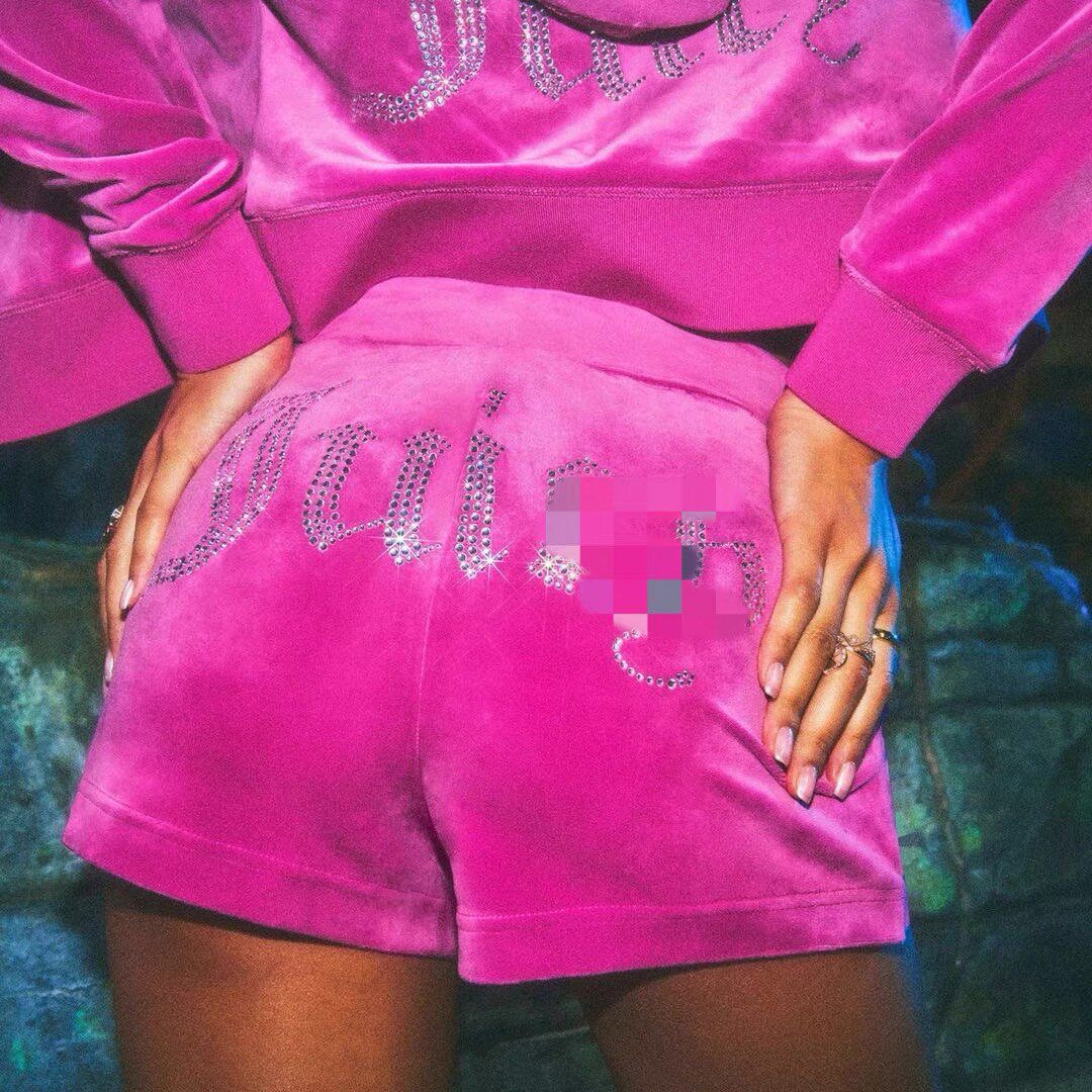 JC pants women's European and American juicy cout**e velvet hot diamond sports midi pants/shorts