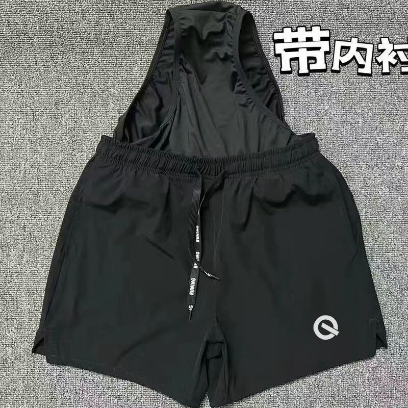 Sports shorts, men's summer running, fitness training, squats, three-point pants, quick-drying, summer vacation, two pieces of track and field running shorts