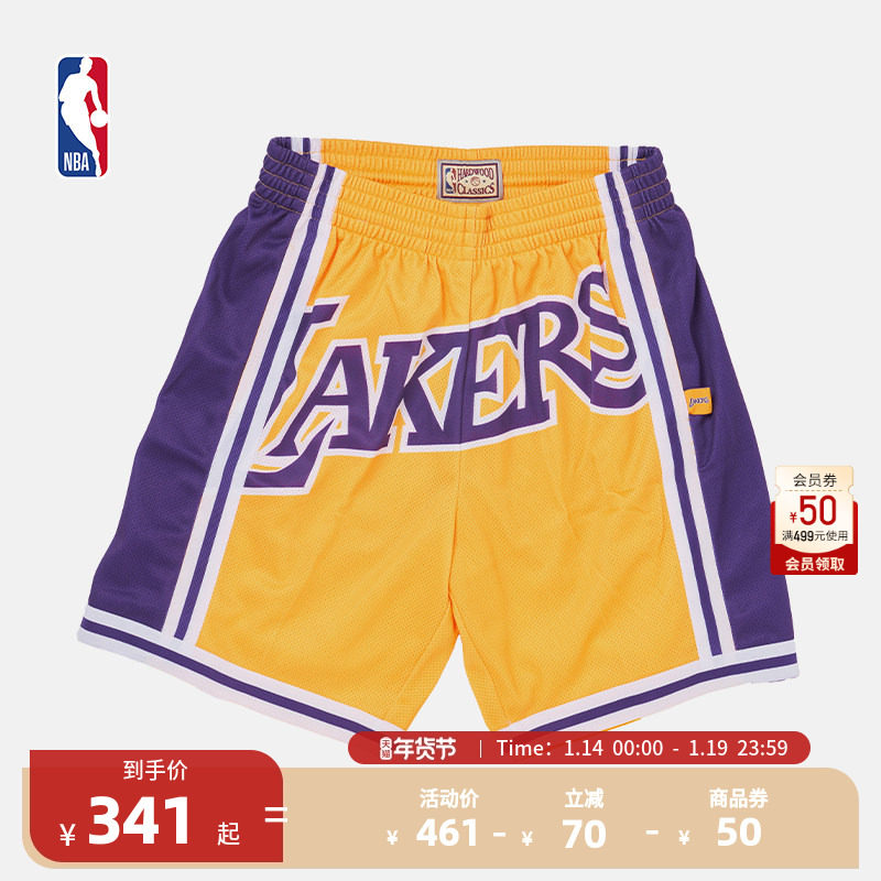 Mitchell & Ness NBA Official Retro Ball Pants BigFace 2.0 Series Lakers Quick Dry Shorts Pants