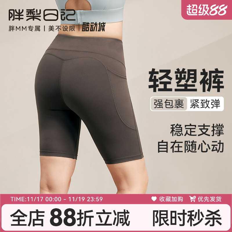 Plus size sports shorts, women's outer cycling, running, tight hip lifting gym pants, fat mm high-waisted tummy tuck quarter pants
