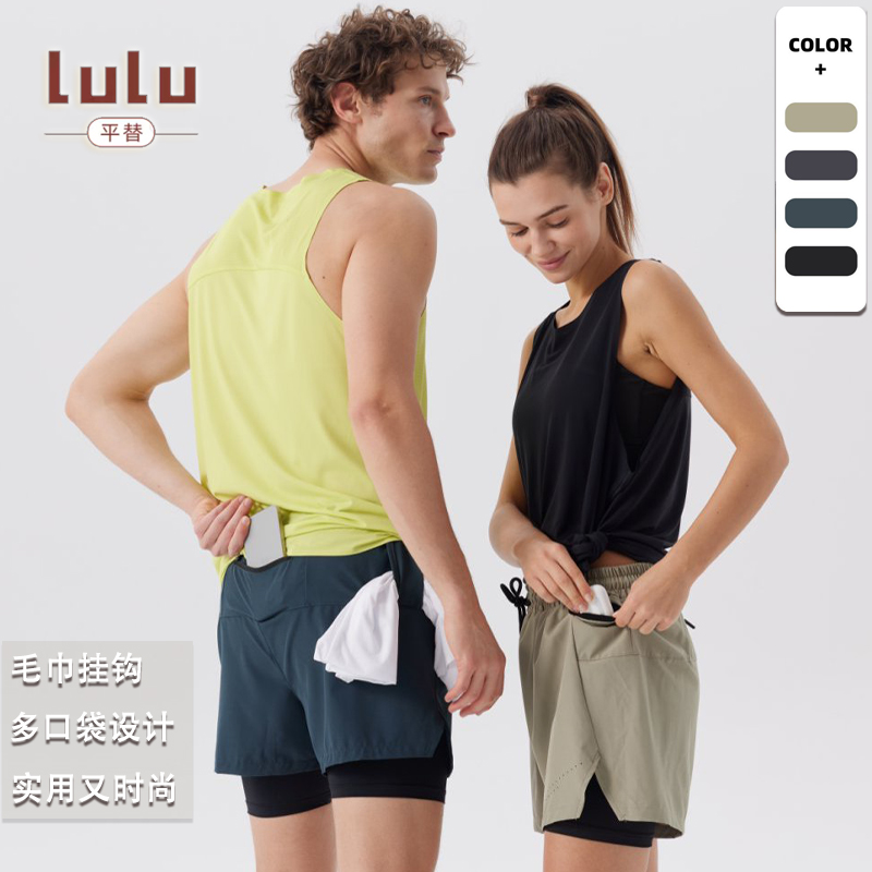 lulu Same Summer Double Sports Shorts Women's Outdoor Running Fitness Breathable Yoga Pants Men's Quick Dry Cropped Shorts