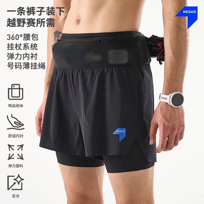 New product丨Inner road three-in-one storage running shorts waist bag breathable men's and women's professional marathon trail shorts